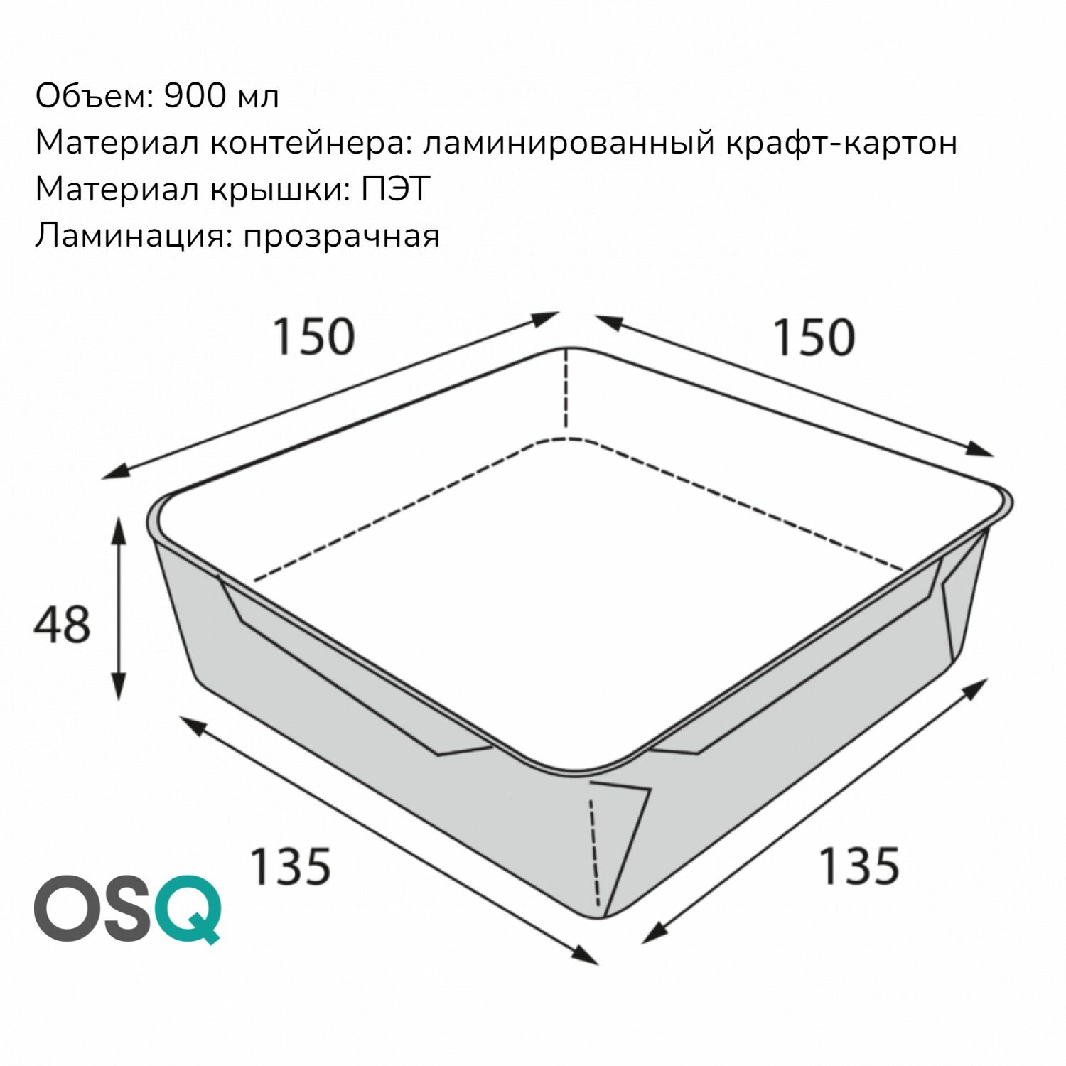Одноразовые картонные контейнеры с крышкой OSQ, объем 900 мл, 13,5х13,5х4,8 см, черные, 10 шт. информация: