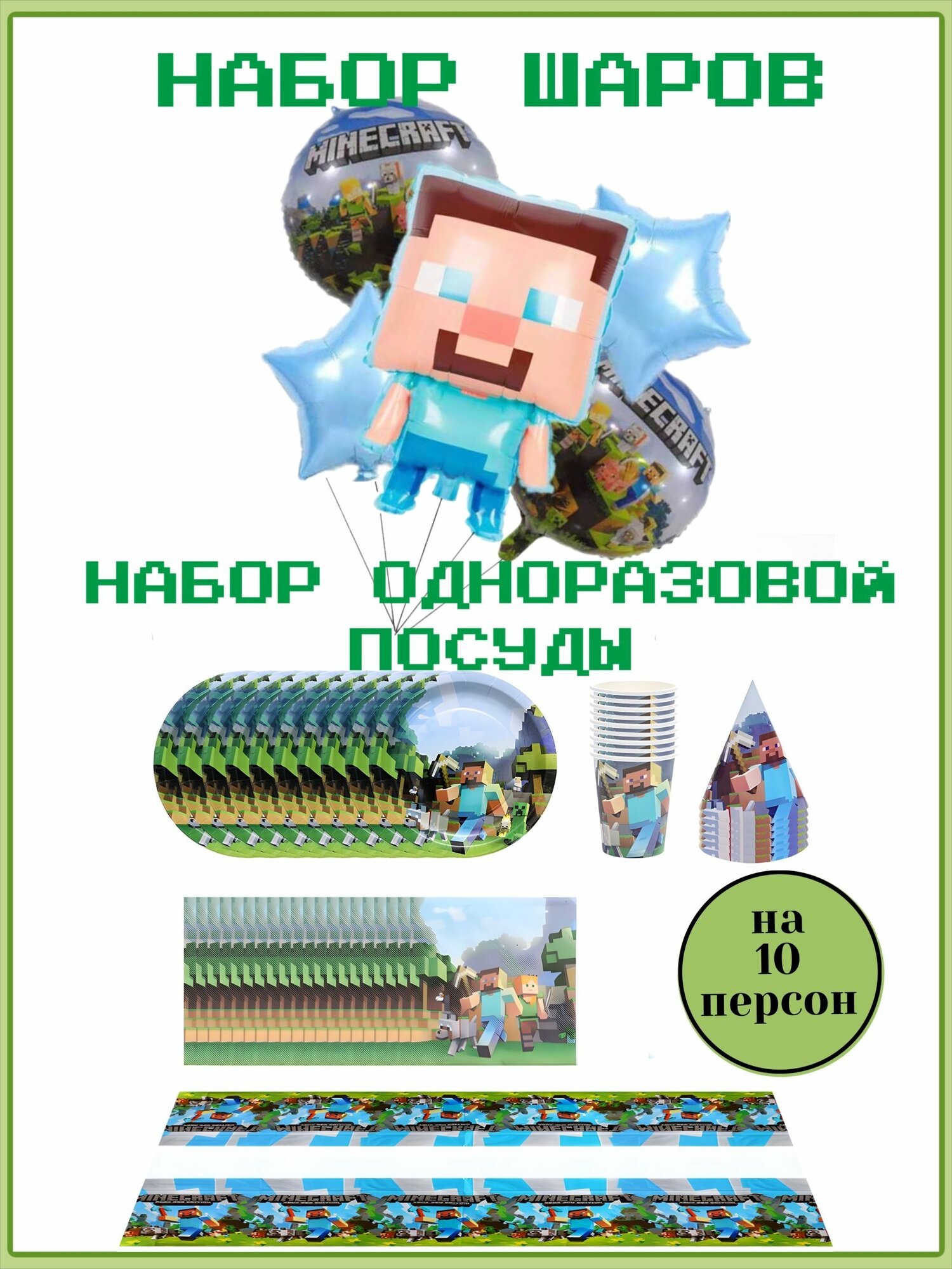 Набор одноразовой посуды для праздника (с шариками) Майнкрафт, 10 персон информация: