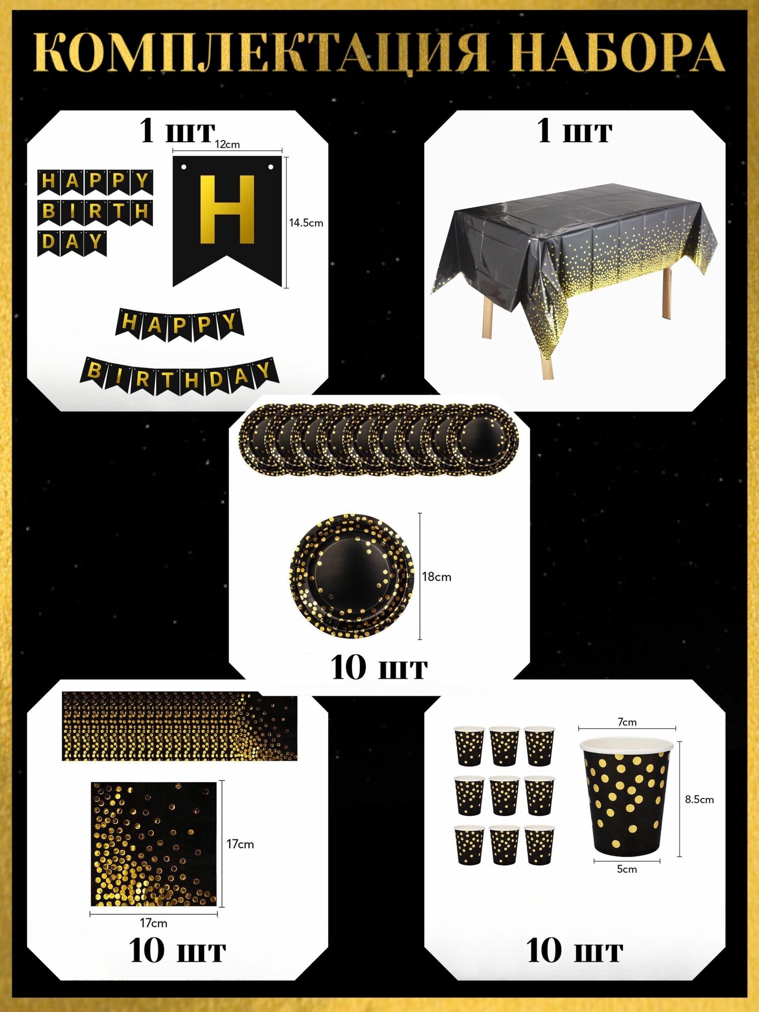 10 цен на Набор одноразовой посуды для праздника Чёрное золото (10 персон)