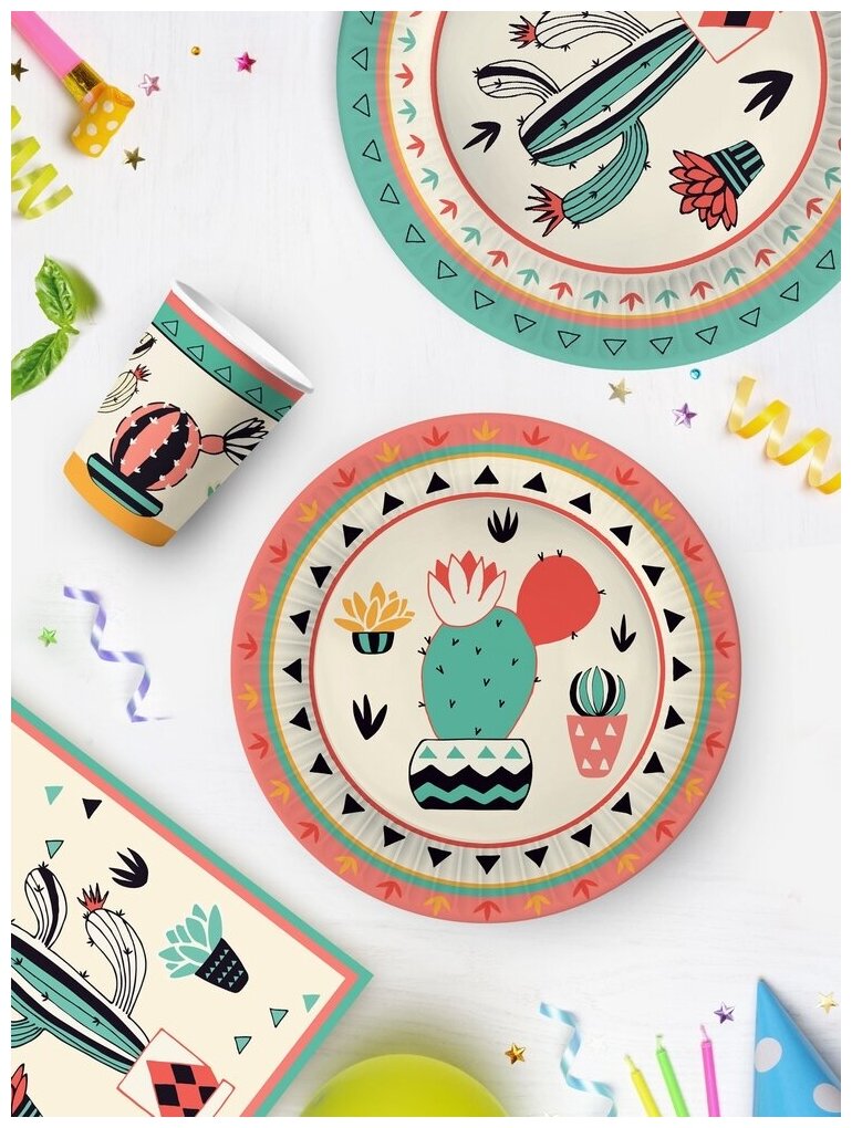 Отзывы на Набор бумажной одноразовой посуды для праздника Кактус-2 (стакан, тарелка мал, тарелка бол, салфетки по 12 шт.) ND Play