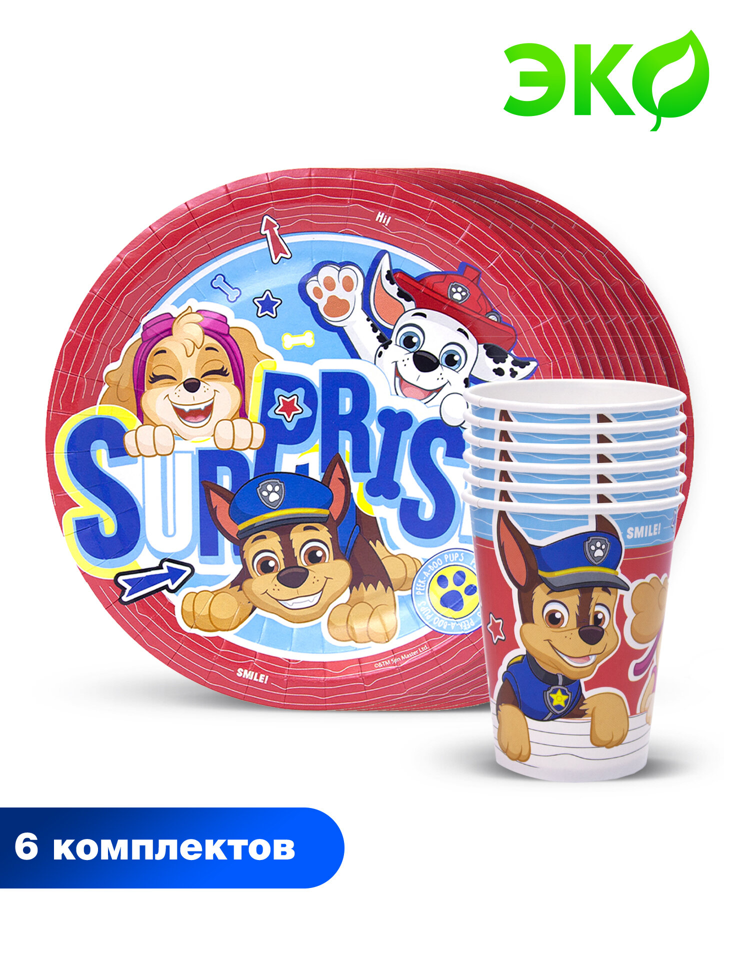 Набор бумажной одноразовой посуды для праздника "Щенячий патруль" №2 ND Play информация: