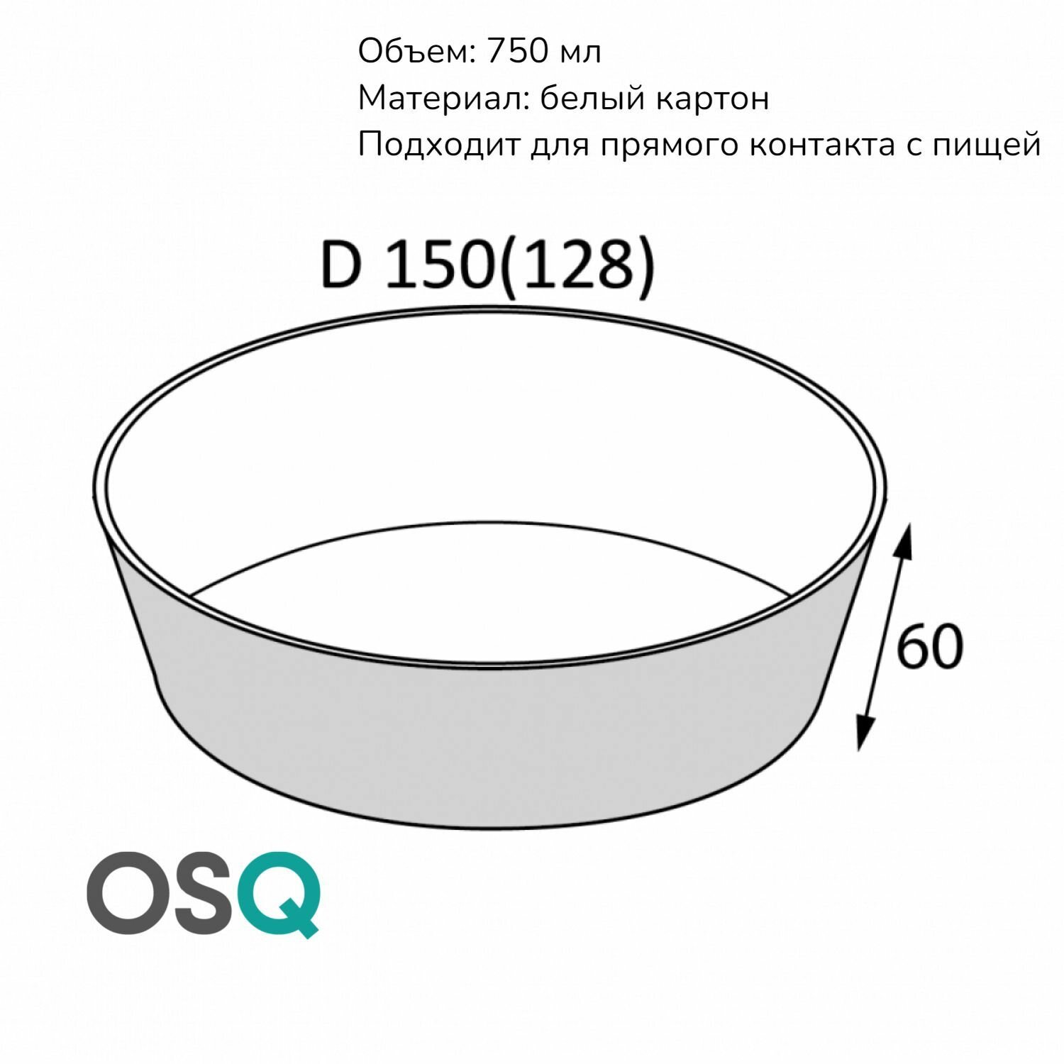Одноразовые контейнеры с крышкой плоской OSQ, круглые, белые, объем 750 мл, 10 шт. информация: