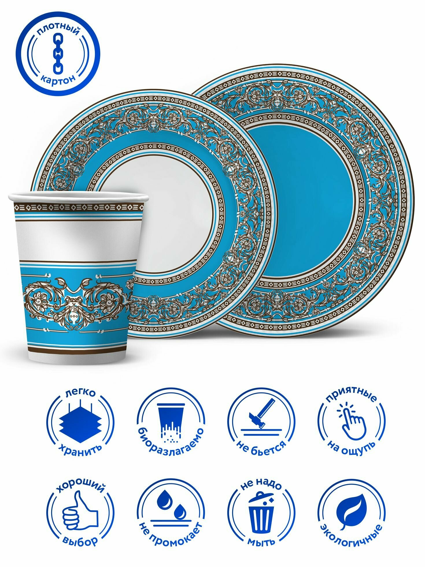 Набор бумажной одноразовой посуды для праздника ND Play / Смола синяя (тарелка 23 см, стакан, по 12 шт.)