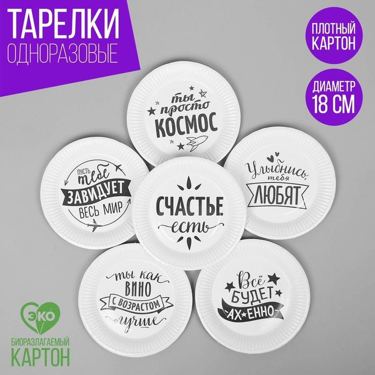 Тарелки бумажные Страна Карнавалия - Хвалебная, цвет белый, d-18 см, 6 шт в упаковке информация: