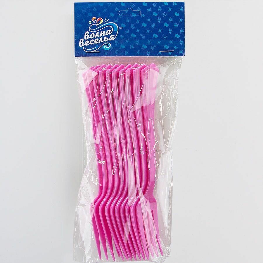 Одноразовые пластиковые приборы Riota Премиум, вилки, ярко-розовый, 17 см, 10 шт информация: