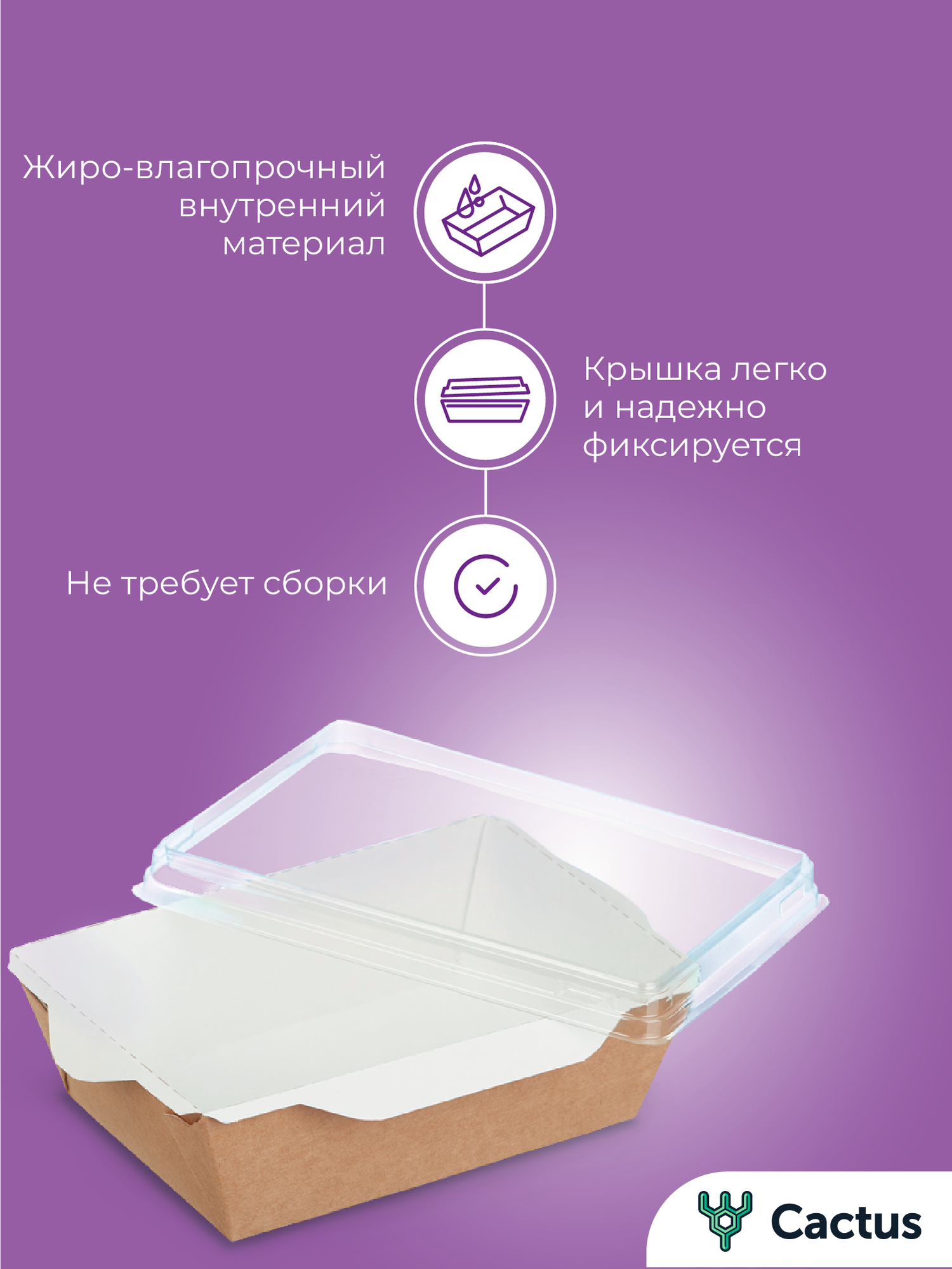 Отзывы на Контейнер одноразовый для еды, салатник: крафт коробка для хранения с крышкой и транспортировки продуктов 400 мл, 10 штук, Cactus