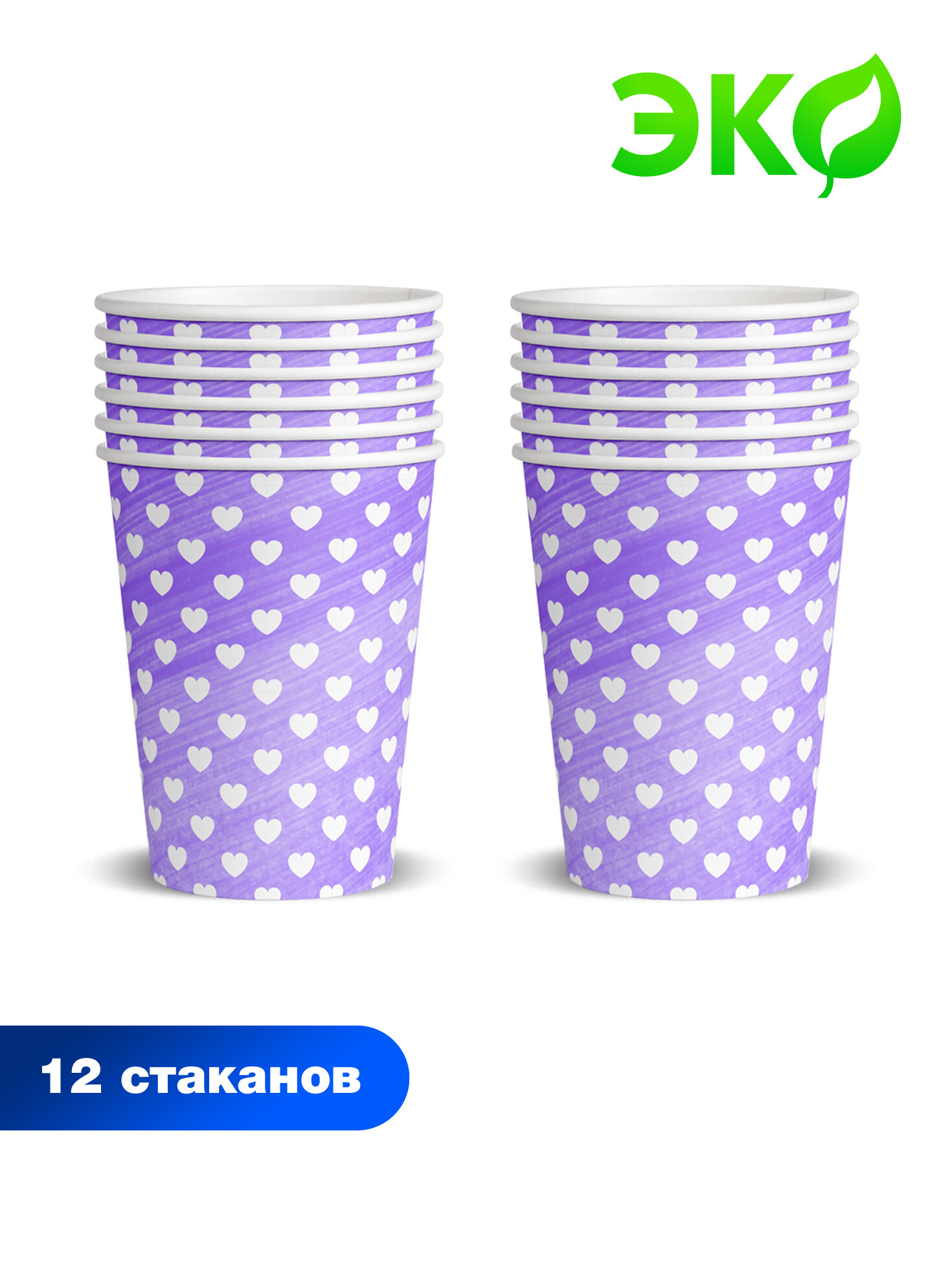 Отзывы на Набор одноразовых бумажных стаканов Лавандовое сердце, в т/у пленке, 12шт*250 мл ND Play