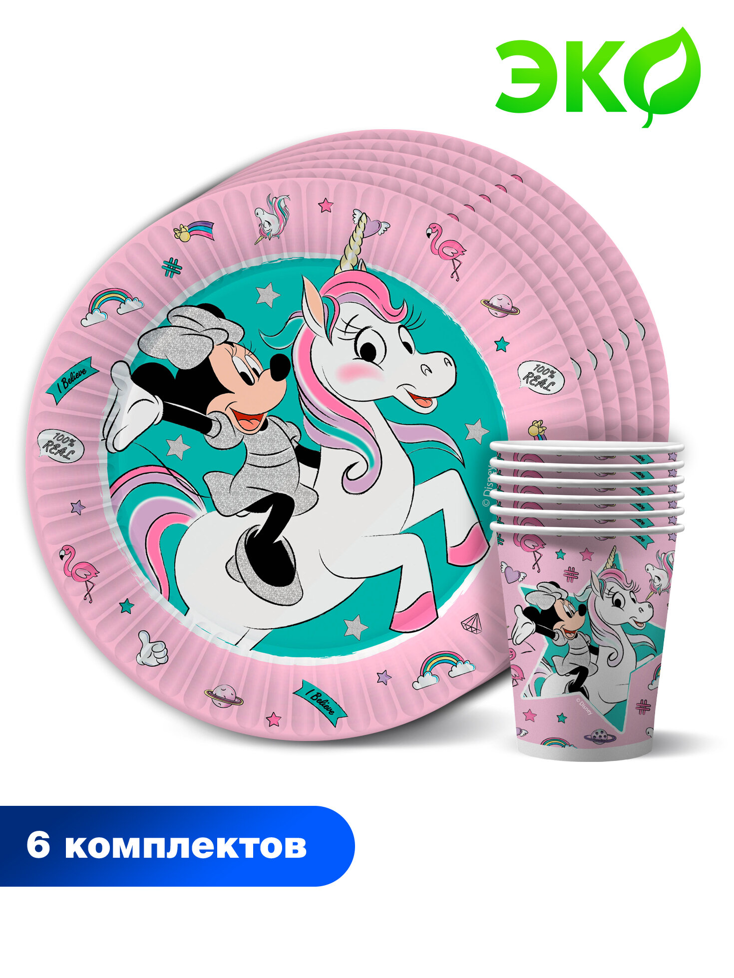 Отзывы на Набор бумажной одноразовой посуды для праздника Minnie Mouse / Минни Маус (Тарелка мал, Стакан по 6 шт.) ND Play