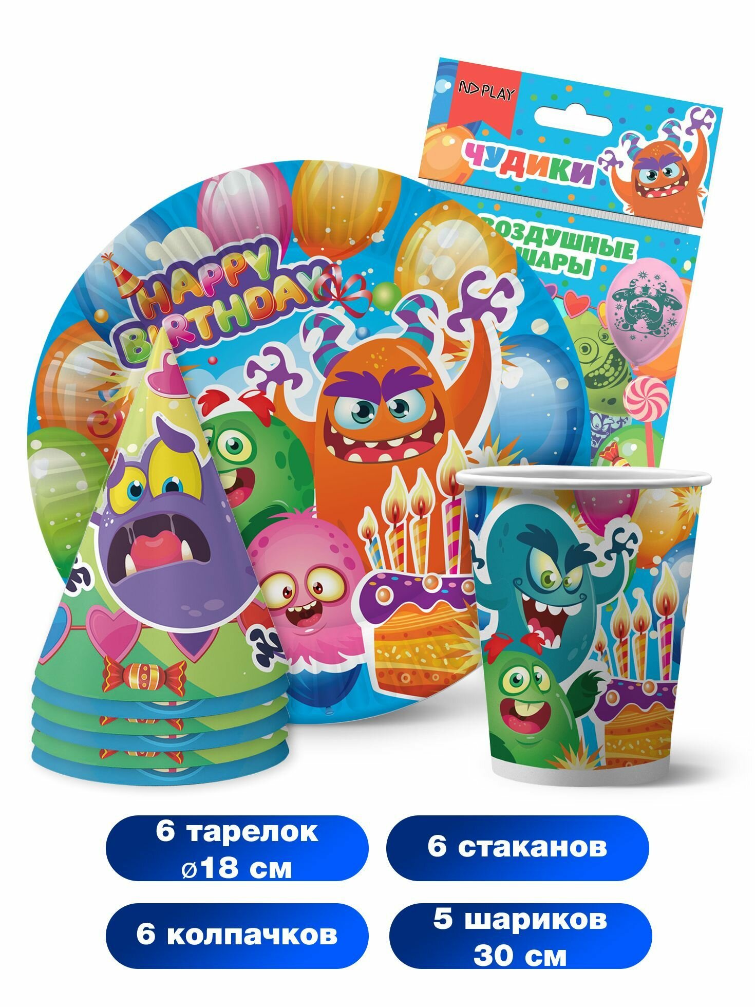 Набор для праздника ND Play / Чудики (шарики, колпачки, салфетки, тарелка мал, стакан, по 6 шт.) информация: