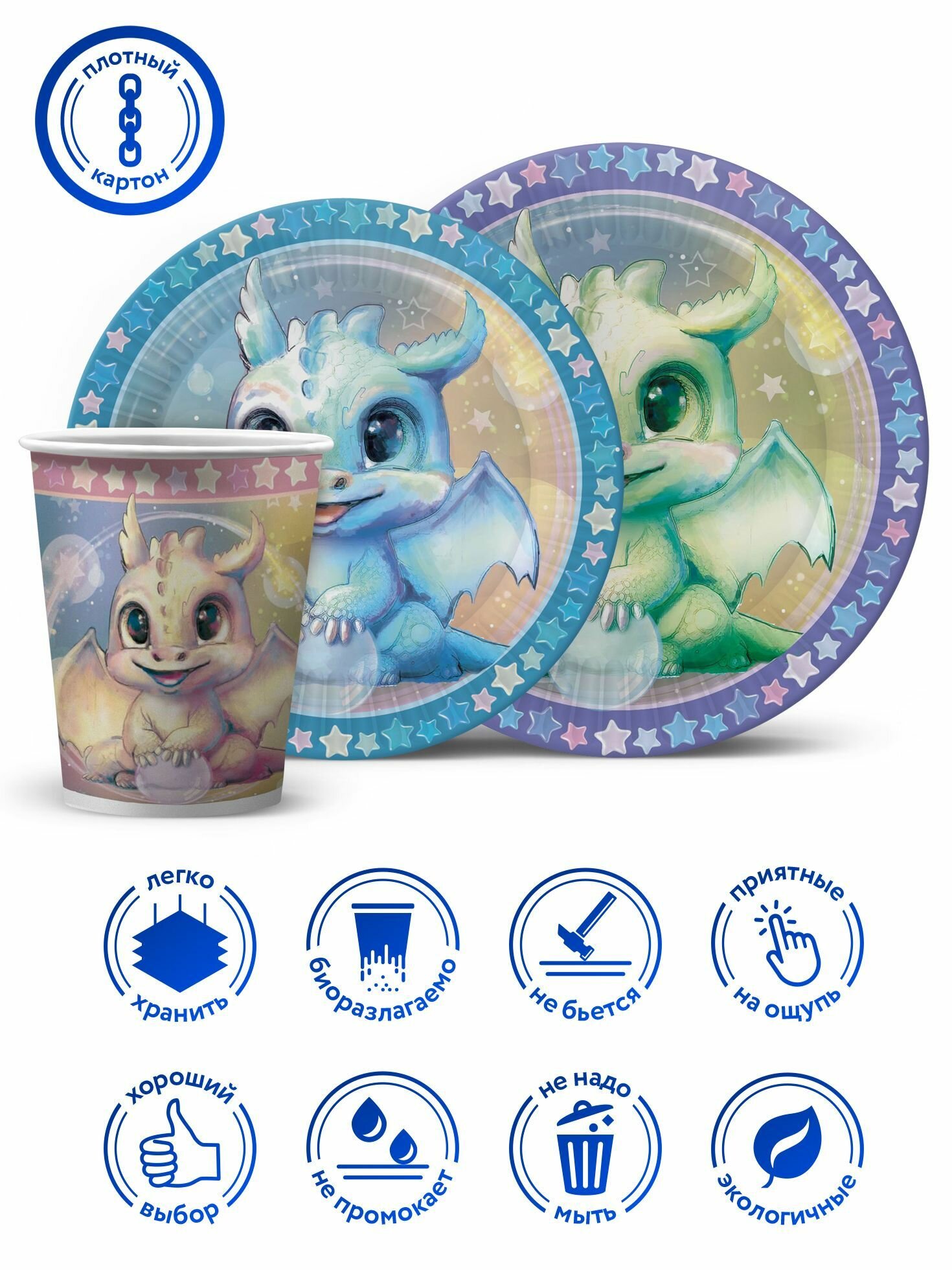 Отзывы на Набор одноразовой бумажной посуды для праздника ND Play. Дракоша (стакан, тарелка 18 см, тарелка 23 см, по 12 шт.)