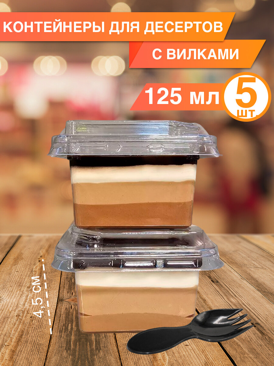 Контейнер одноразовый с крышкой и вилкой 125мл, 5 шт информация: