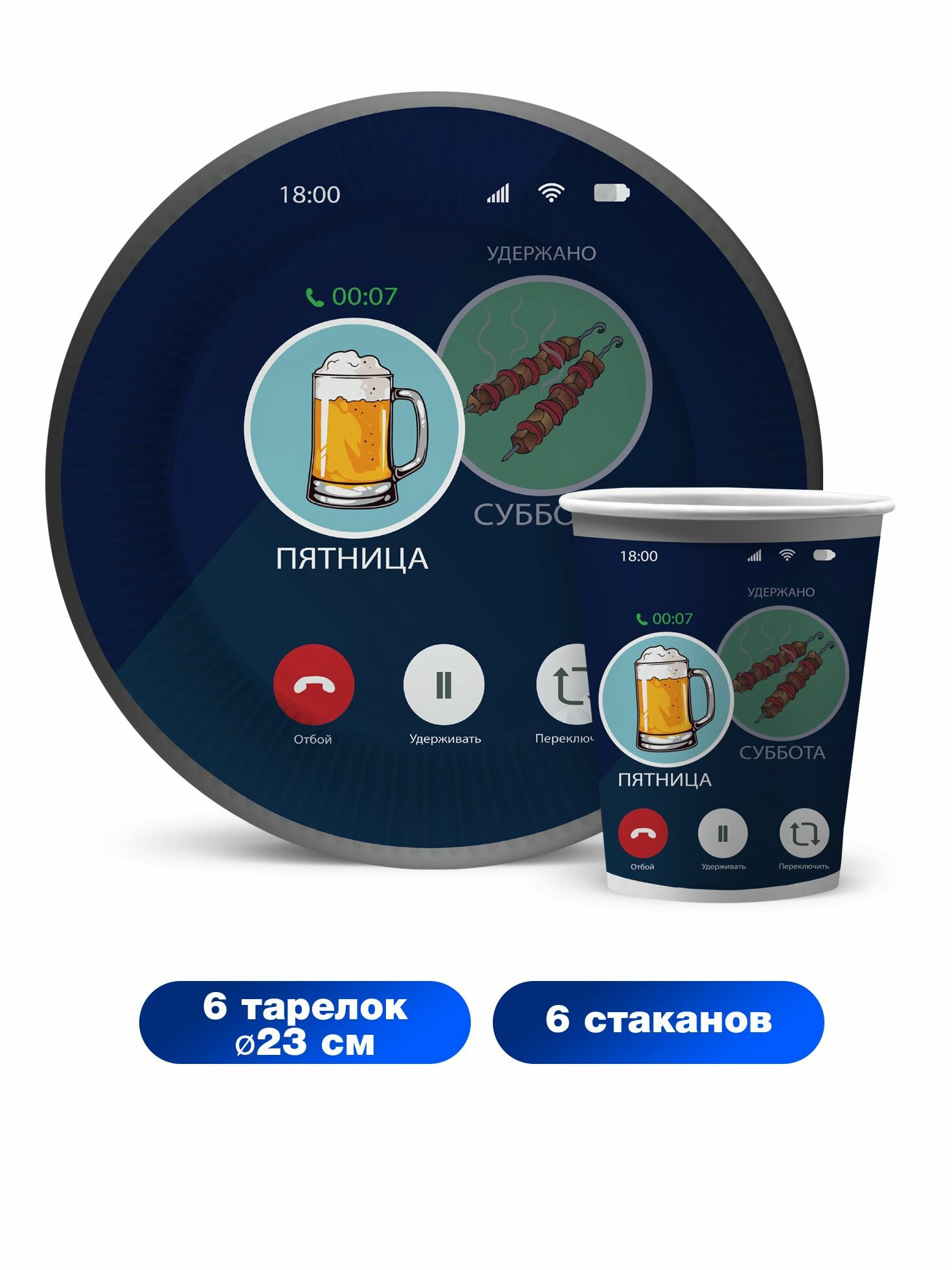 Набор одноразовой бумажной посуды для праздника ND Play / Пиво вызывает (тарелка 23 см, стакан, по 6 шт.) информация: