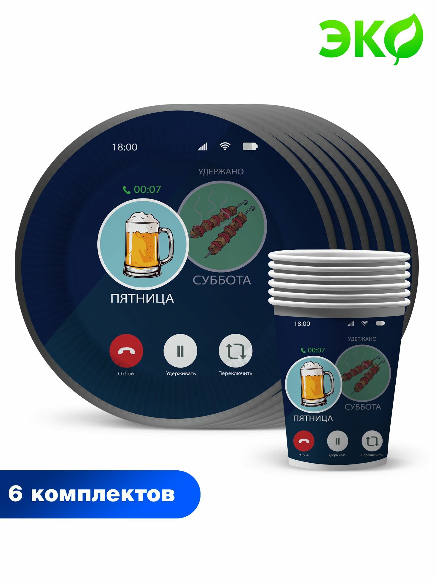 10 цен на Набор одноразовой бумажной посуды для праздника ND Play / Пиво вызывает (тарелка 23 см, стакан, по 6 шт.)