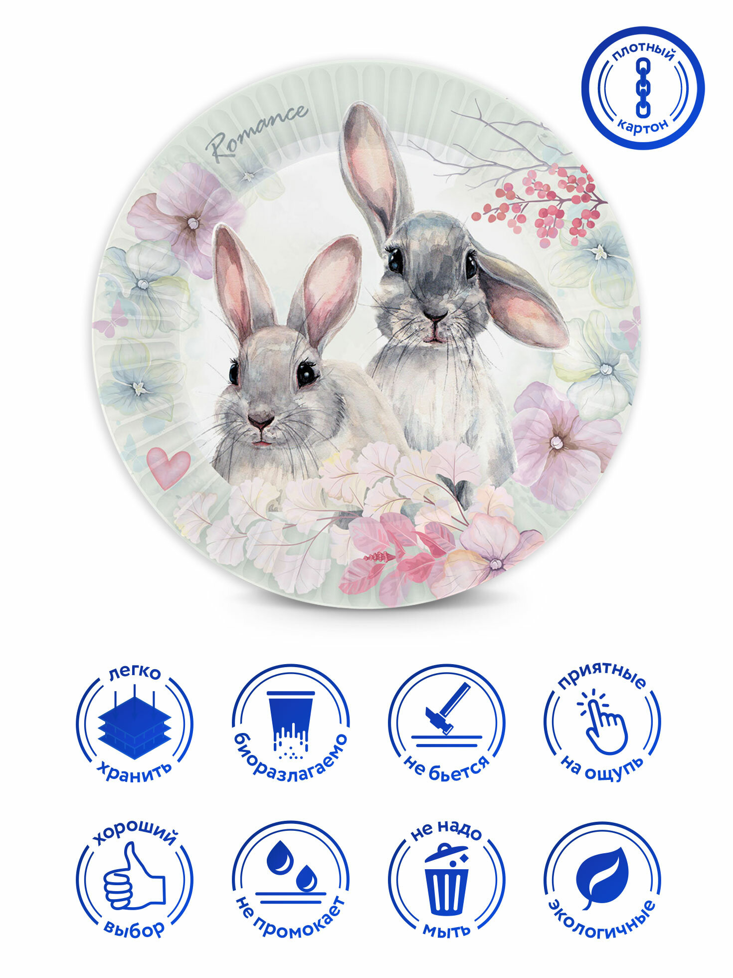 10 цен на Набор бумажных тарелок Кролики (пастель), 6 шт d=180 мм