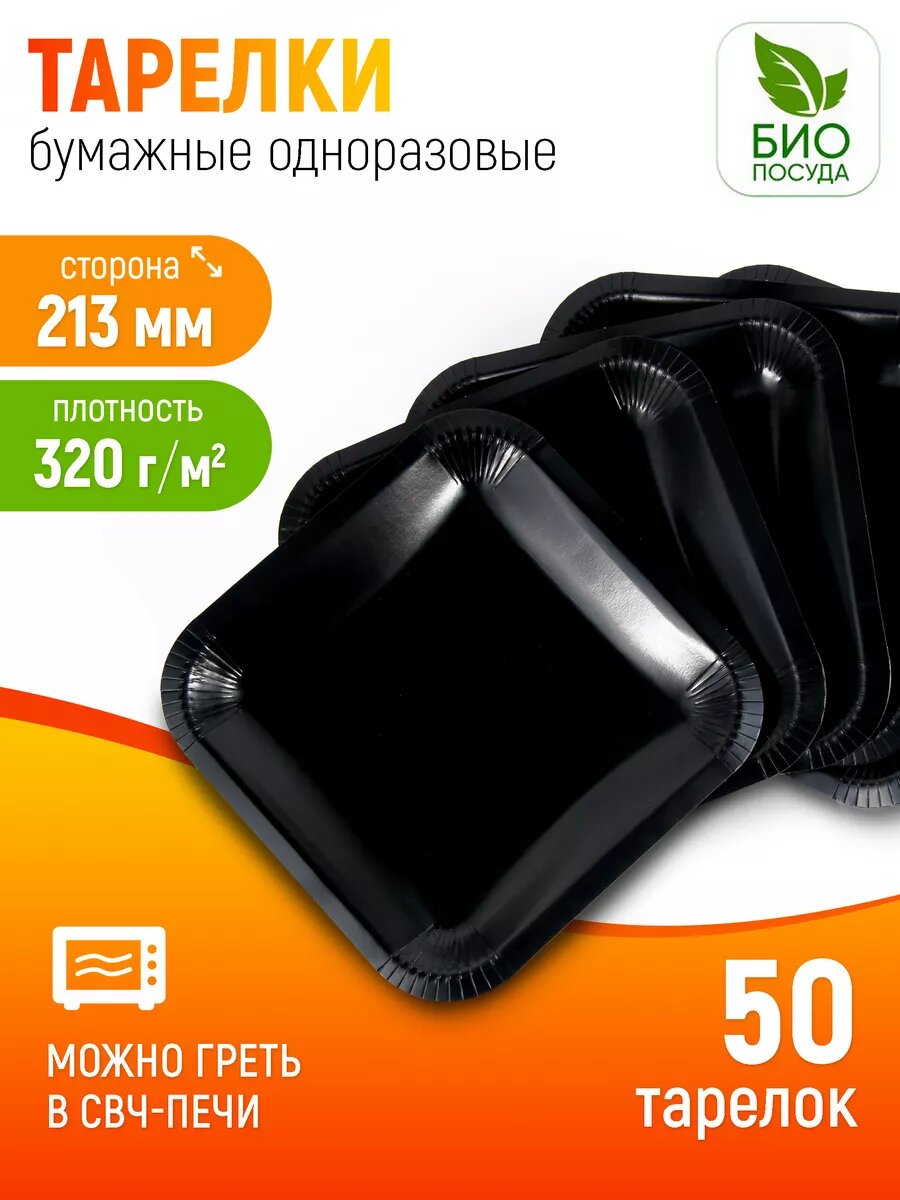Одноразовые тарелки, бумажные, 21 см, для горячих и холодных блюд, 50 штук информация:
