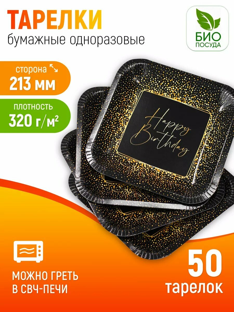 10 цен на Тарелки картонэко, 50 штук, трехслойные, черные/золотые, диаметр 21см
