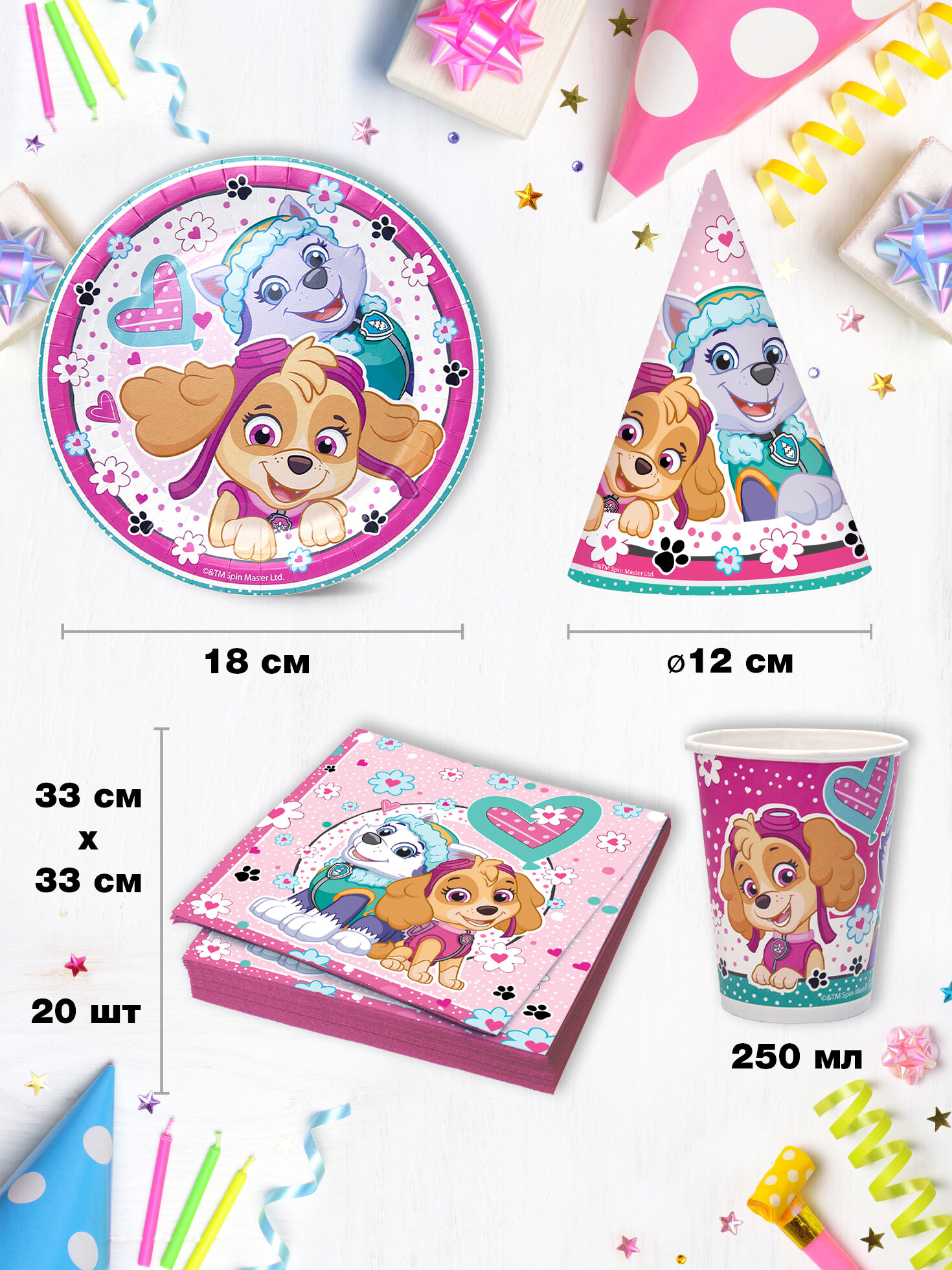 Набор одноразовой бумажной посуды для праздника ND Play / Щенячий патруль № 3 (для девочек) (колпачки, стаканы, тарелки, салфетки) информация: