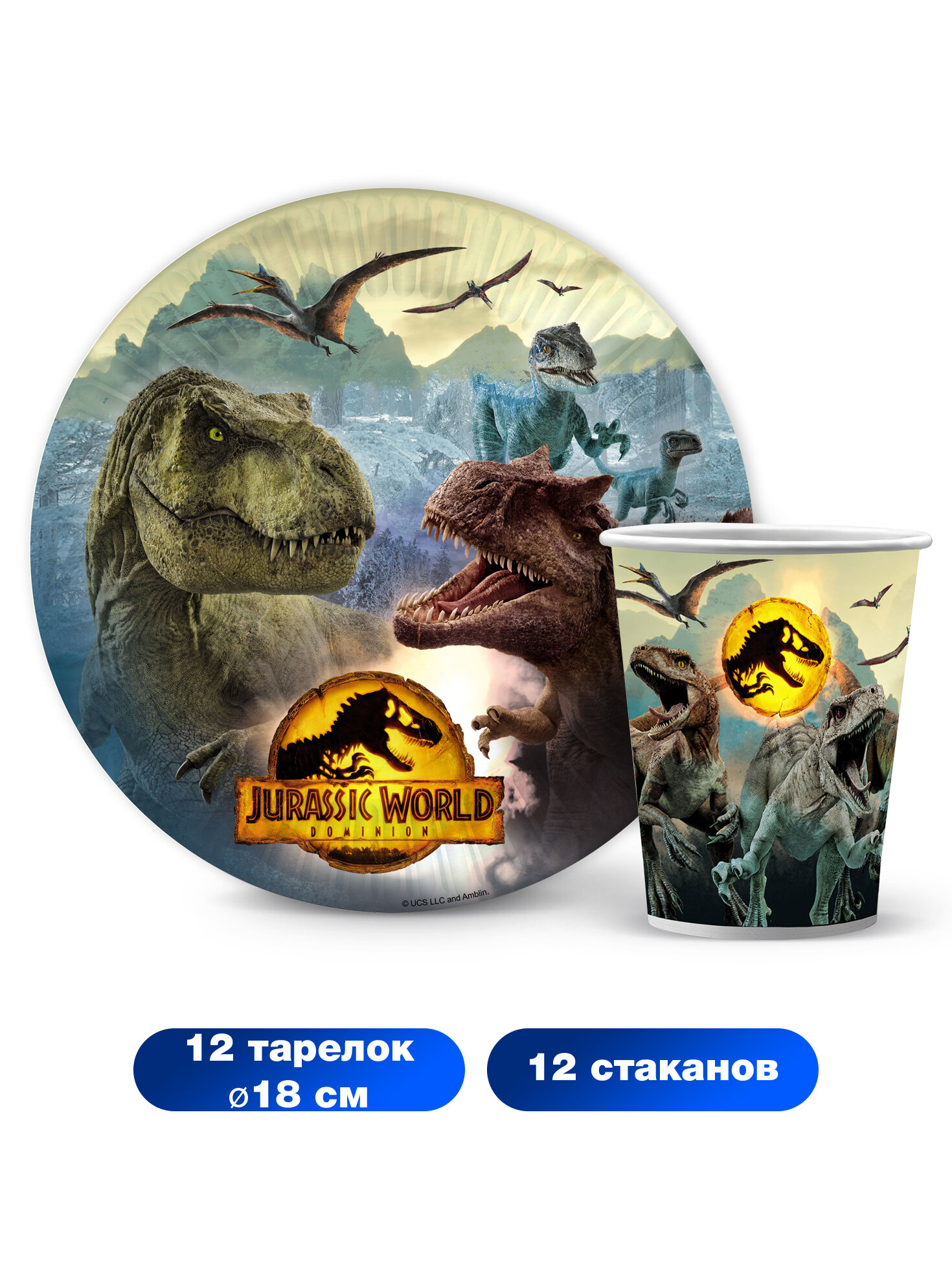 10 цен на Набор бумажной одноразовой посуды для праздника Jurassic World/ Мир Юрского периода. желтый (тарелка мал, стакан, по 12 шт.) ND Play