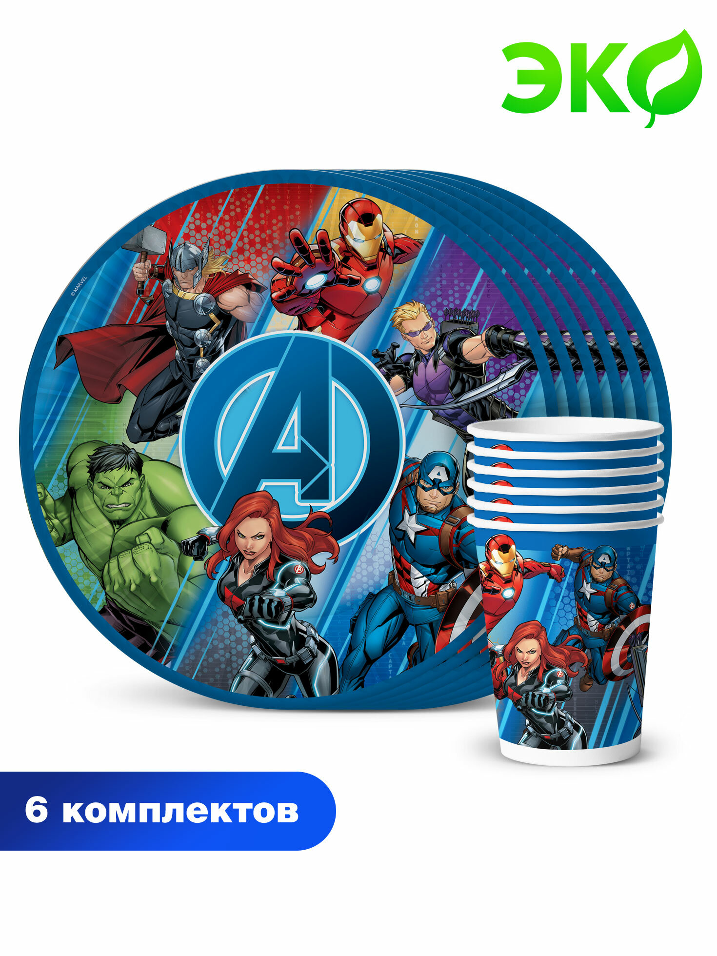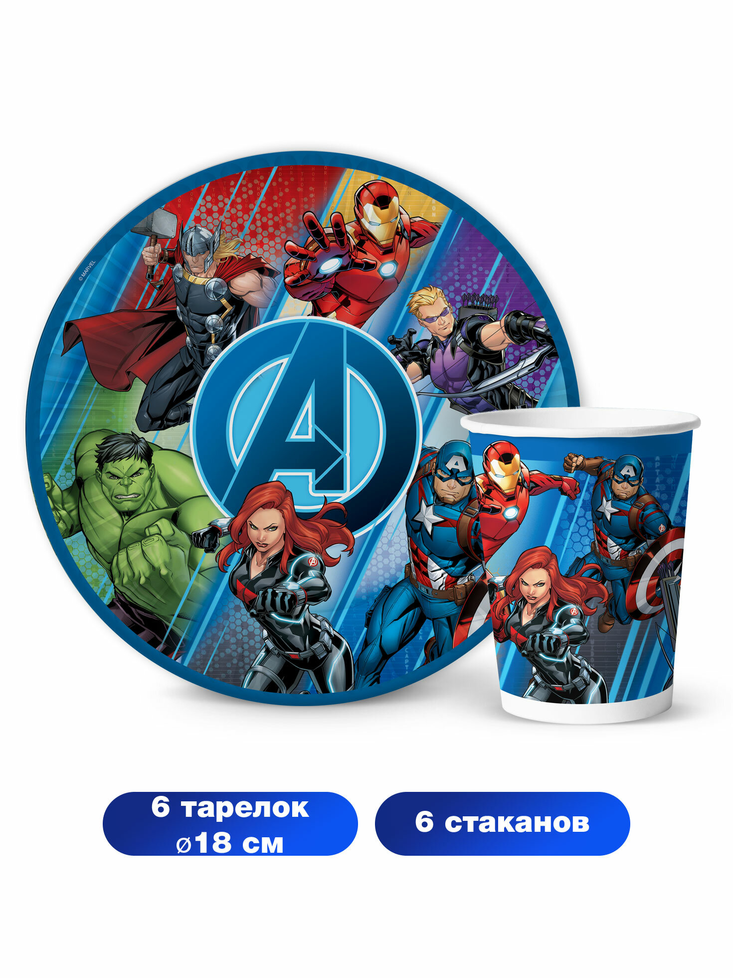 10 цен на Набор бумажной одноразовой посуды для праздника Marvel / Мавел синий (тарелка мал, стакан, по 6 шт.) ND Play