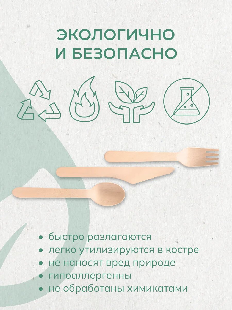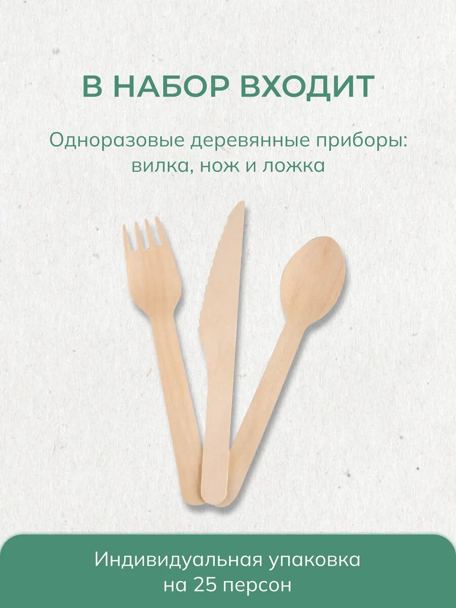 Одноразовые деревянные эко-столовые приборы Drevodel, 25 упаковок по 3 штуки информация: