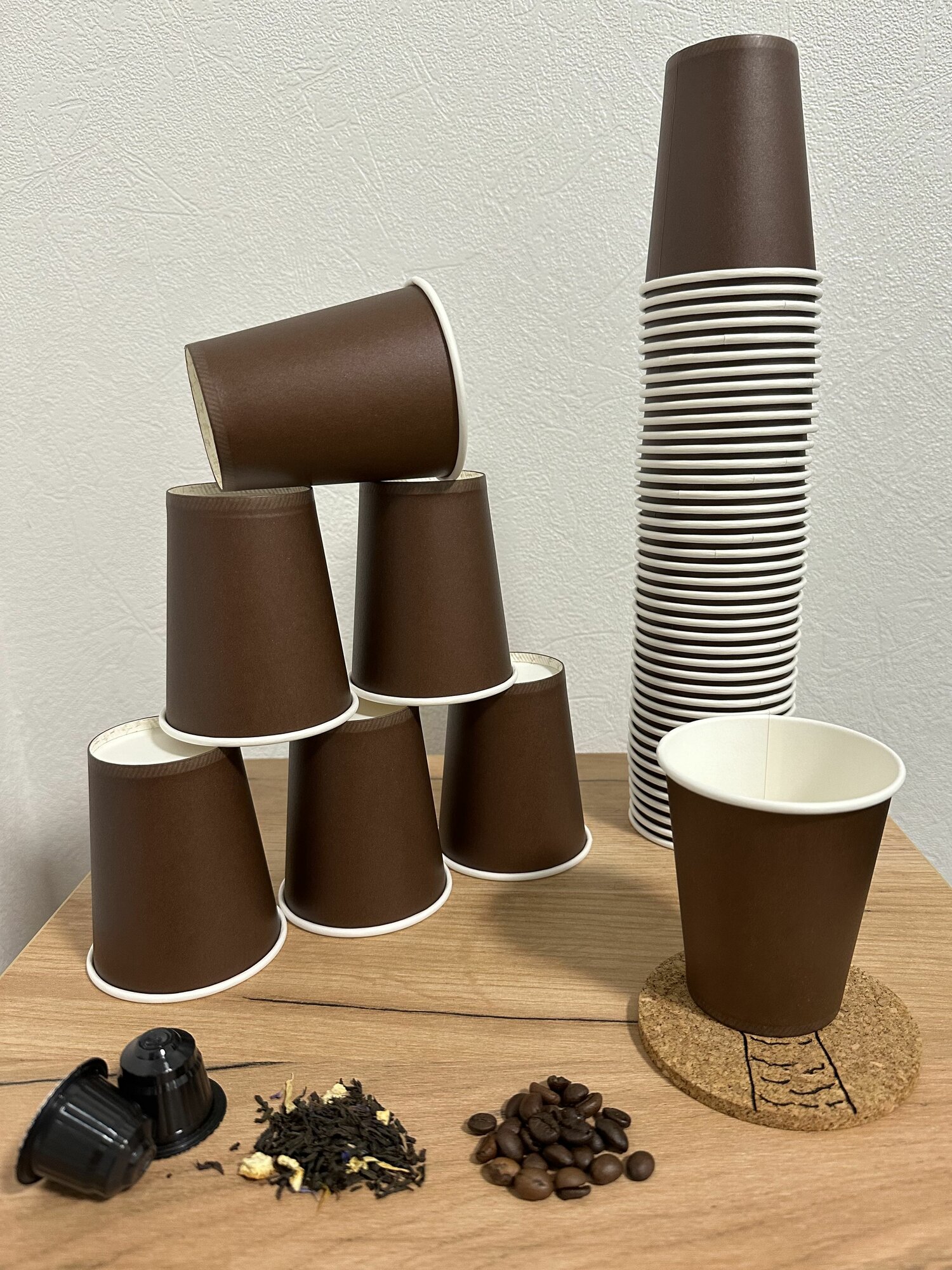 Бумажные стаканчики одноразовые 200 шт. коричневые для кофе, чая, горячих и холодных напитков информация: