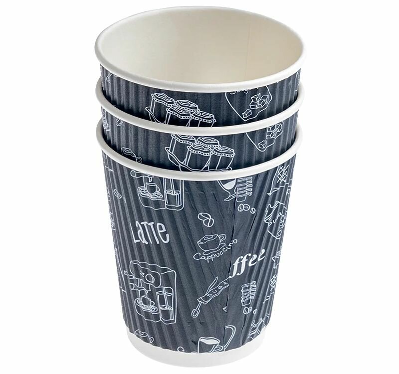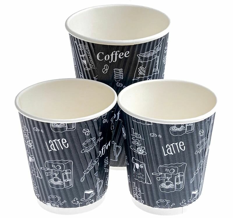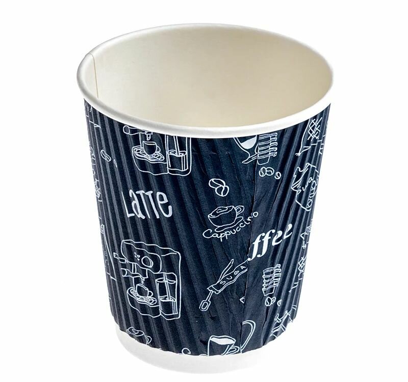 Набор стаканов картонных 250мл d-80мм гофрированный с надписями 3-х слойный для горячего уп/50шт информация:
