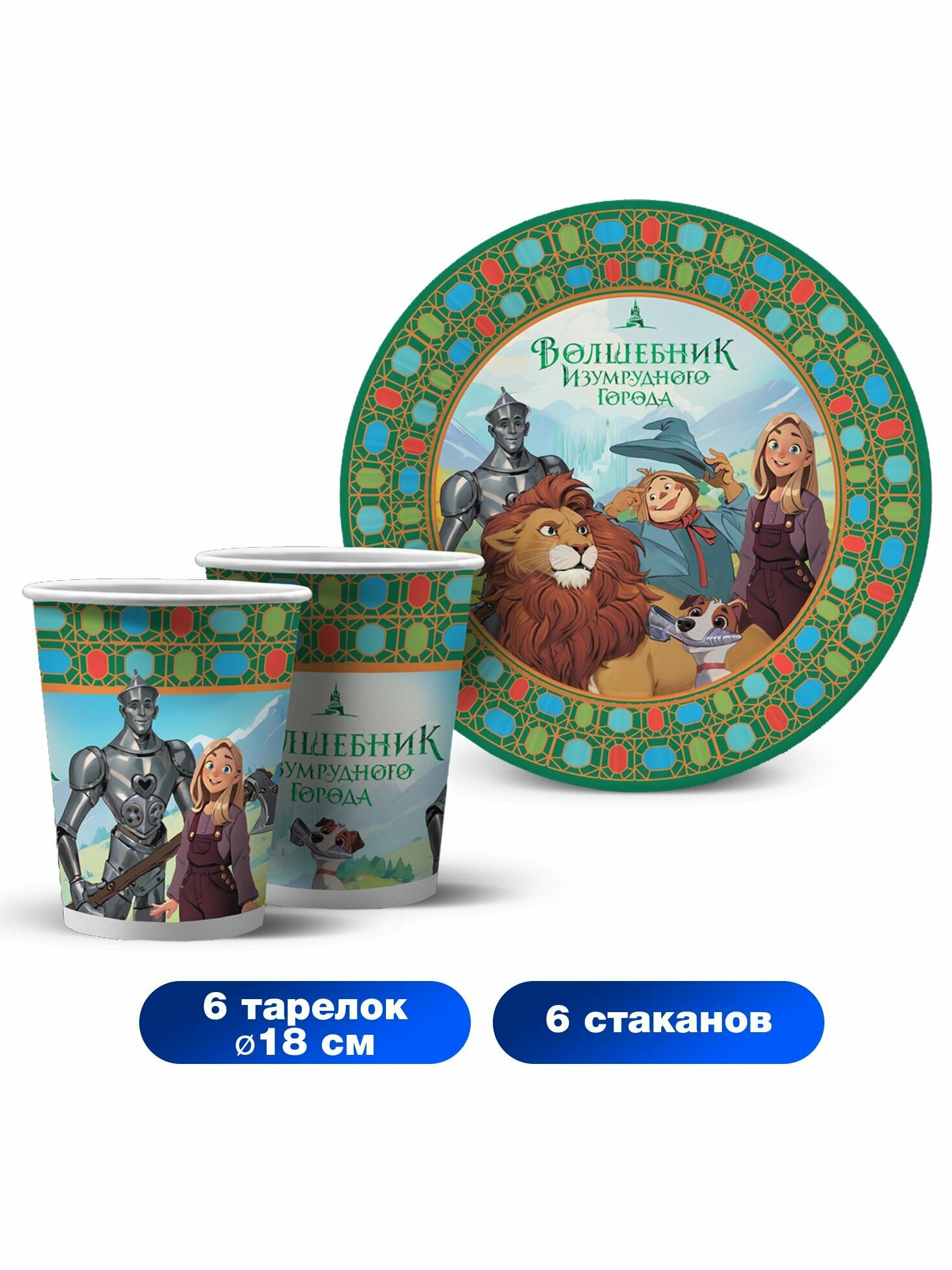 Набор бумажной одноразовой посуды для праздника ND Play / Волшебник изумрудного города (тарелка 18 см, стакан, по 6 шт.) информация: