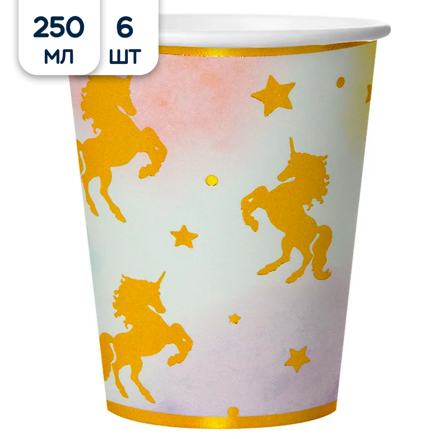 Стаканы бумажные для праздника Riota Звездный Единорог, 250 мл, 6 шт. информация: