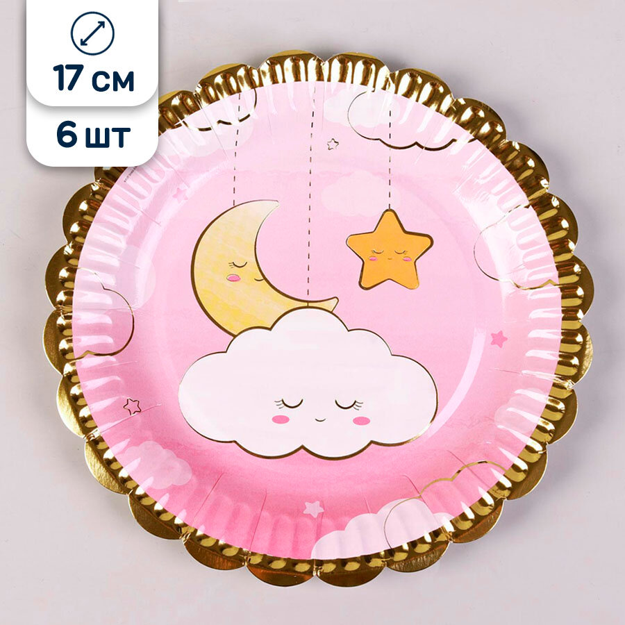 Тарелки бумажные одноразовые Riota Облака, розовый, 18 см, 6 шт информация: