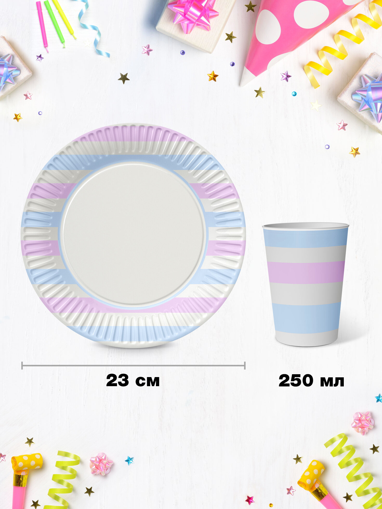 Набор для праздника "Пастель" №1 (3 упаковки тарелок и 3 упаковки стаканов) информация: