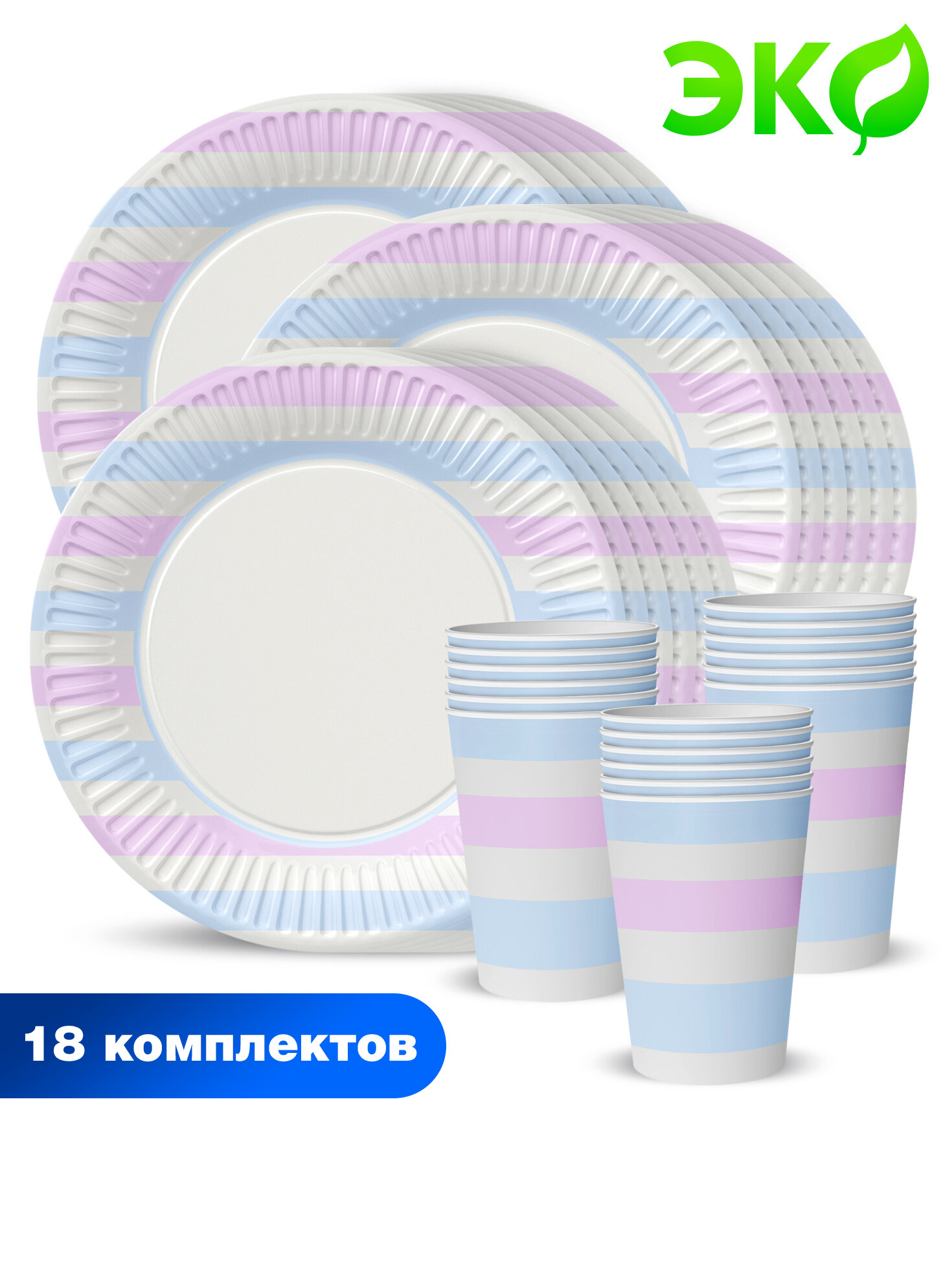 10 цен на Набор для праздника "Пастель" №1 (3 упаковки тарелок и 3 упаковки стаканов)