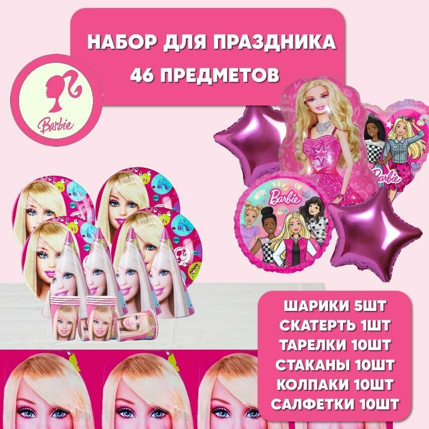 10 цен на Набор одноразовой посуды для праздника (с шариками) Барби, 10 персон (посуда Barbie)