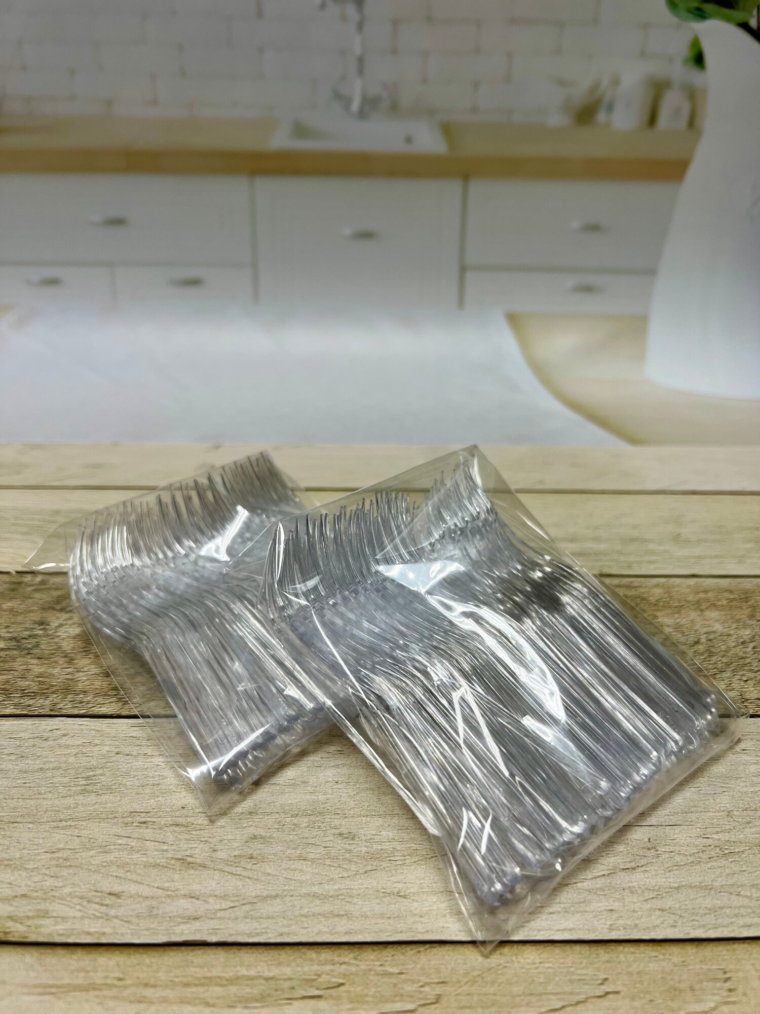 Набор мини вилок 10 см ( одноразовые, пластиковые, прозрачные) 100шт, полистирол (PS, ПС) (для закусок, сервировки, банкета, фуршета, кейтеринга) информация: