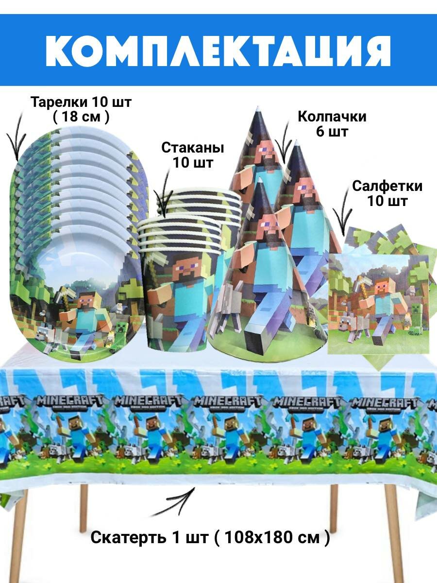 10 цен на Одноразовая посуда Майнкрафт с колпачками/ Maincraft