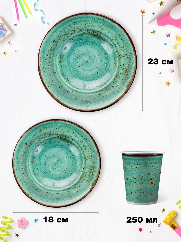 Набор бумажной одноразовой посуды для праздника ND Play / Смола синяя (тарелка 23 см, стакан, по 12 шт.)
