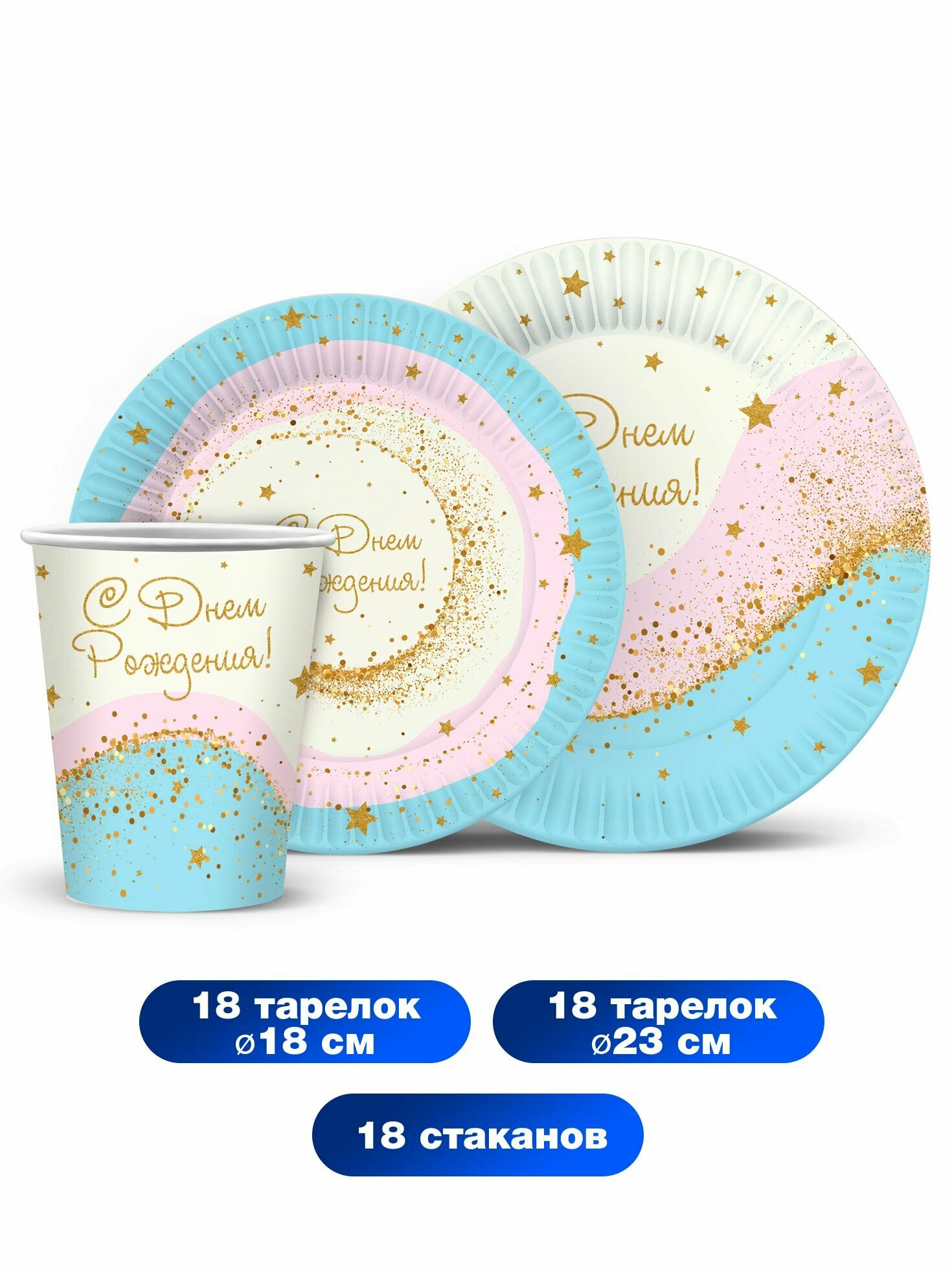 10 цен на Набор одноразовой бумажной посуды для праздника ND Play / Воздушный зефир (тарелка 18 см, тарелка 23 см, стакан, по 18 шт.)