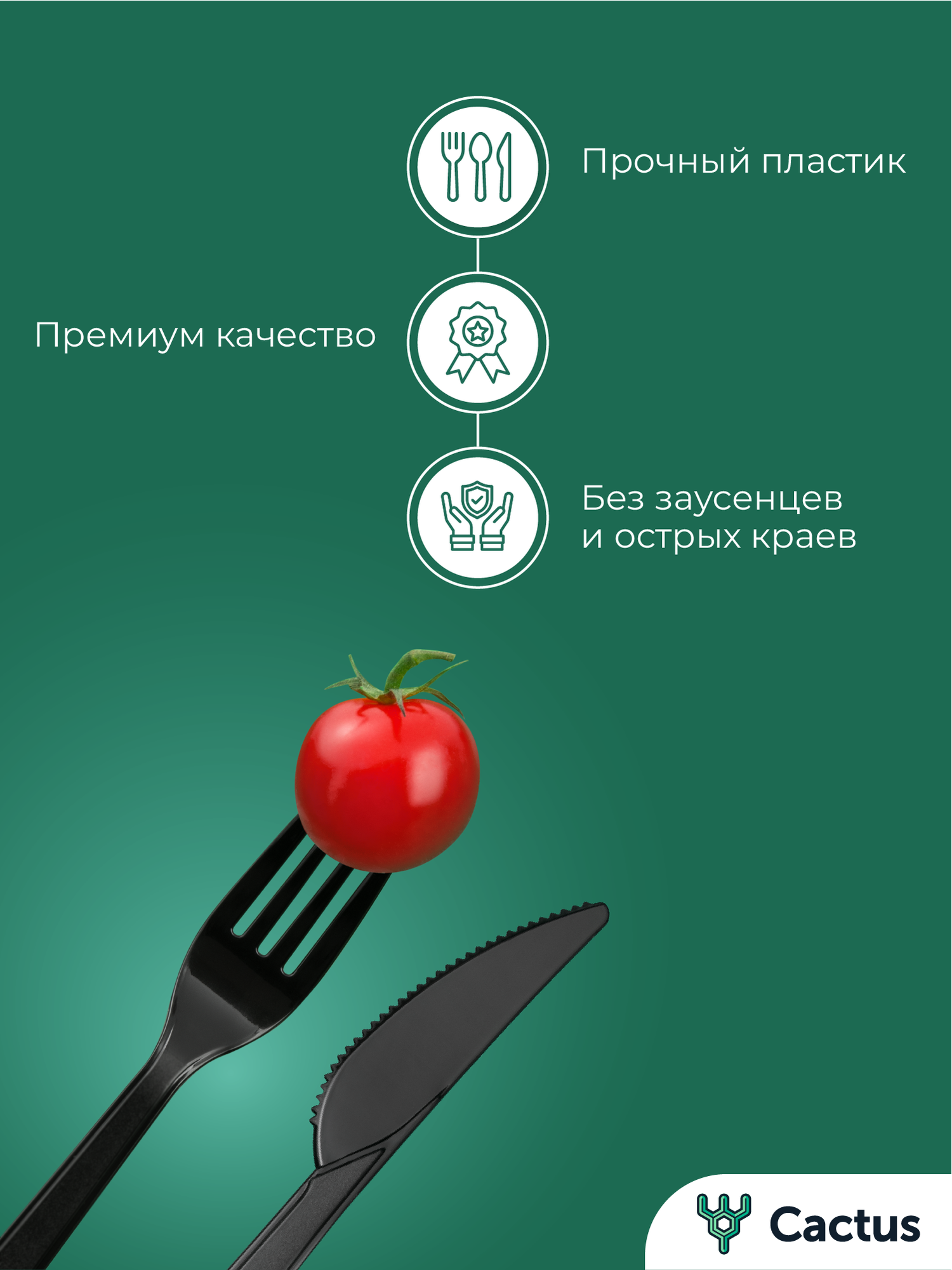 Отзывы на Набор одноразовой пластиковой посуды, вилка 50шт + ложка 50шт + нож 50 шт, черные, Cactus