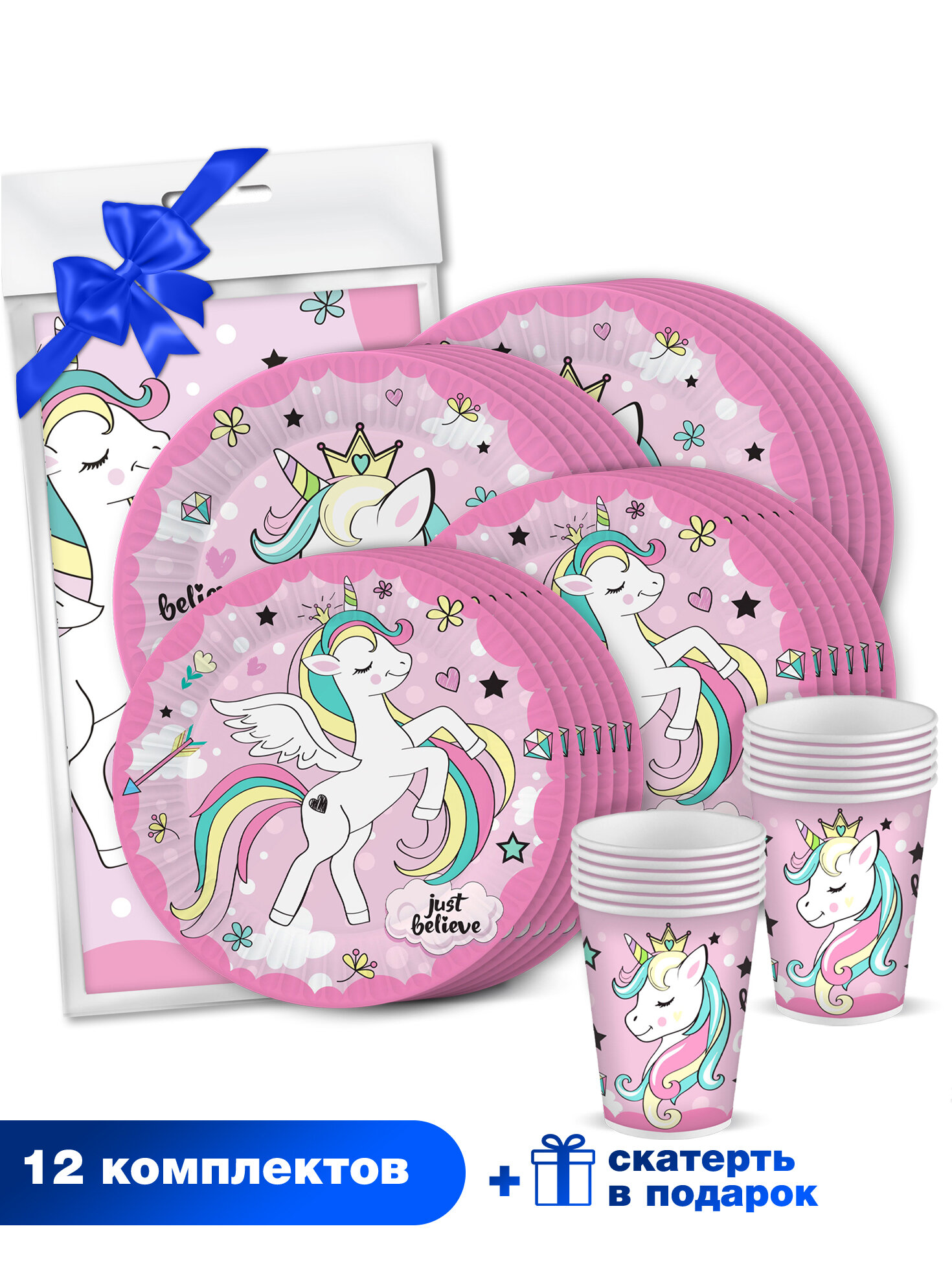 Отзывы на Набор одноразовой бумажной посуды для праздника ND Play / Единорог + скатерть (скатерть Единорог 120х180, Тарелка бол, Тарелка мал, Стакан по 12 шт.)