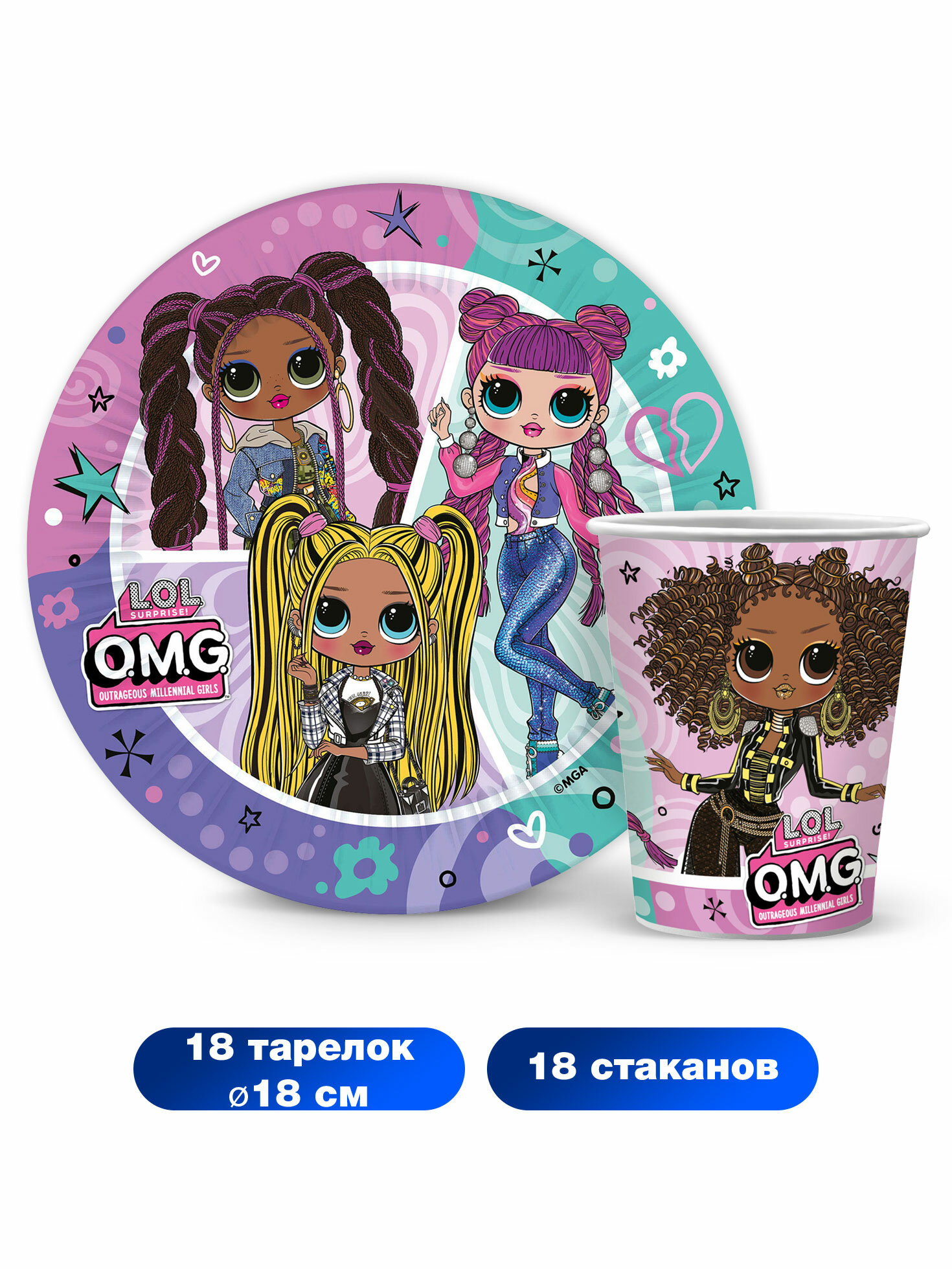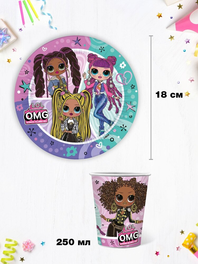 Набор одноразовой бумажной посуды для праздника ND Play / LOL (OMG) (тарелка мал, стакан по 18 шт.) информация: