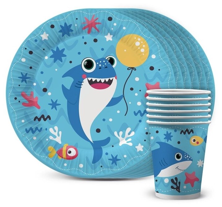 Набор бумажной одноразовой посуды для праздника Акулята (тарелка мал, стакан, по 6 шт.) ND Play информация: