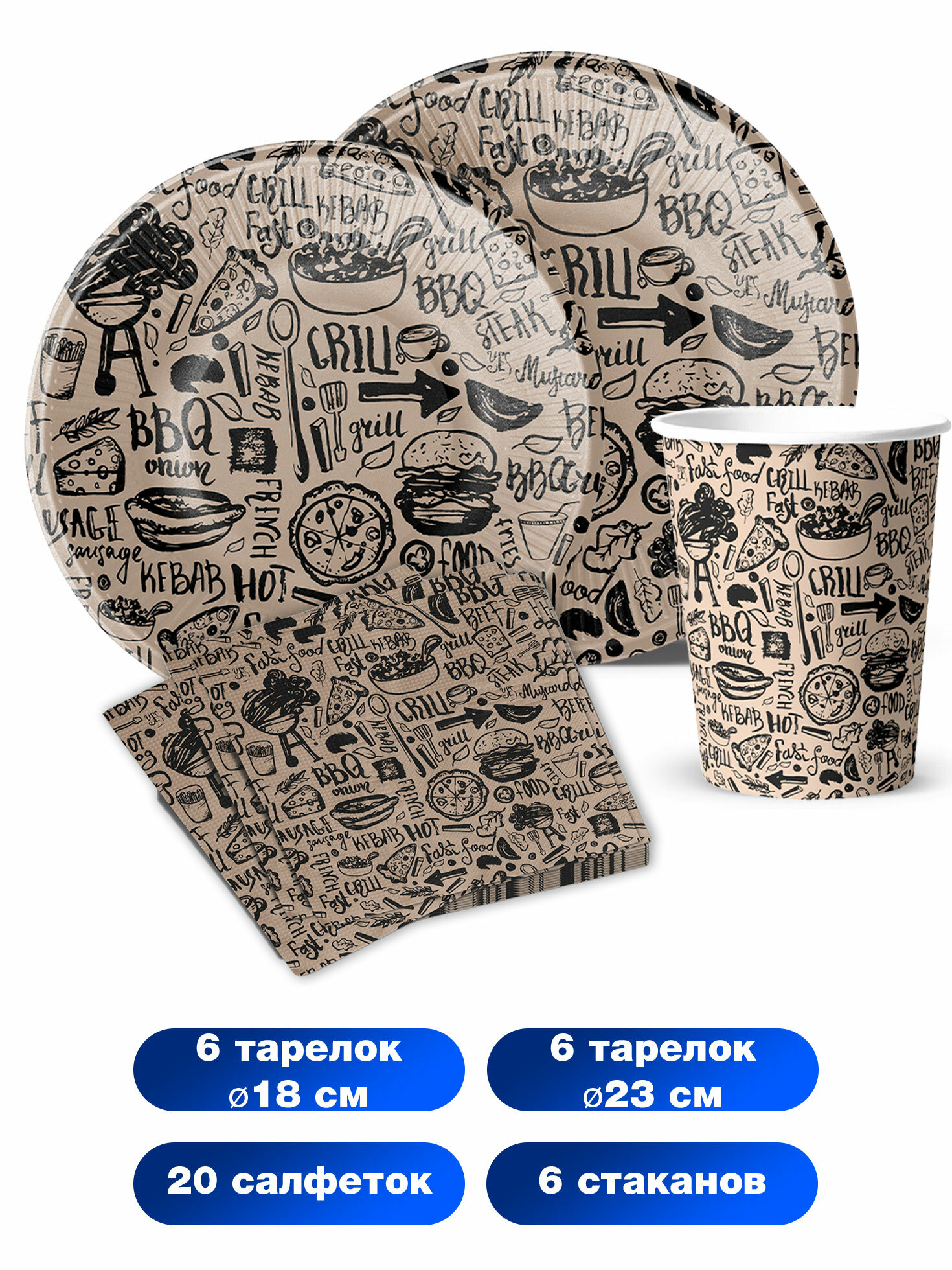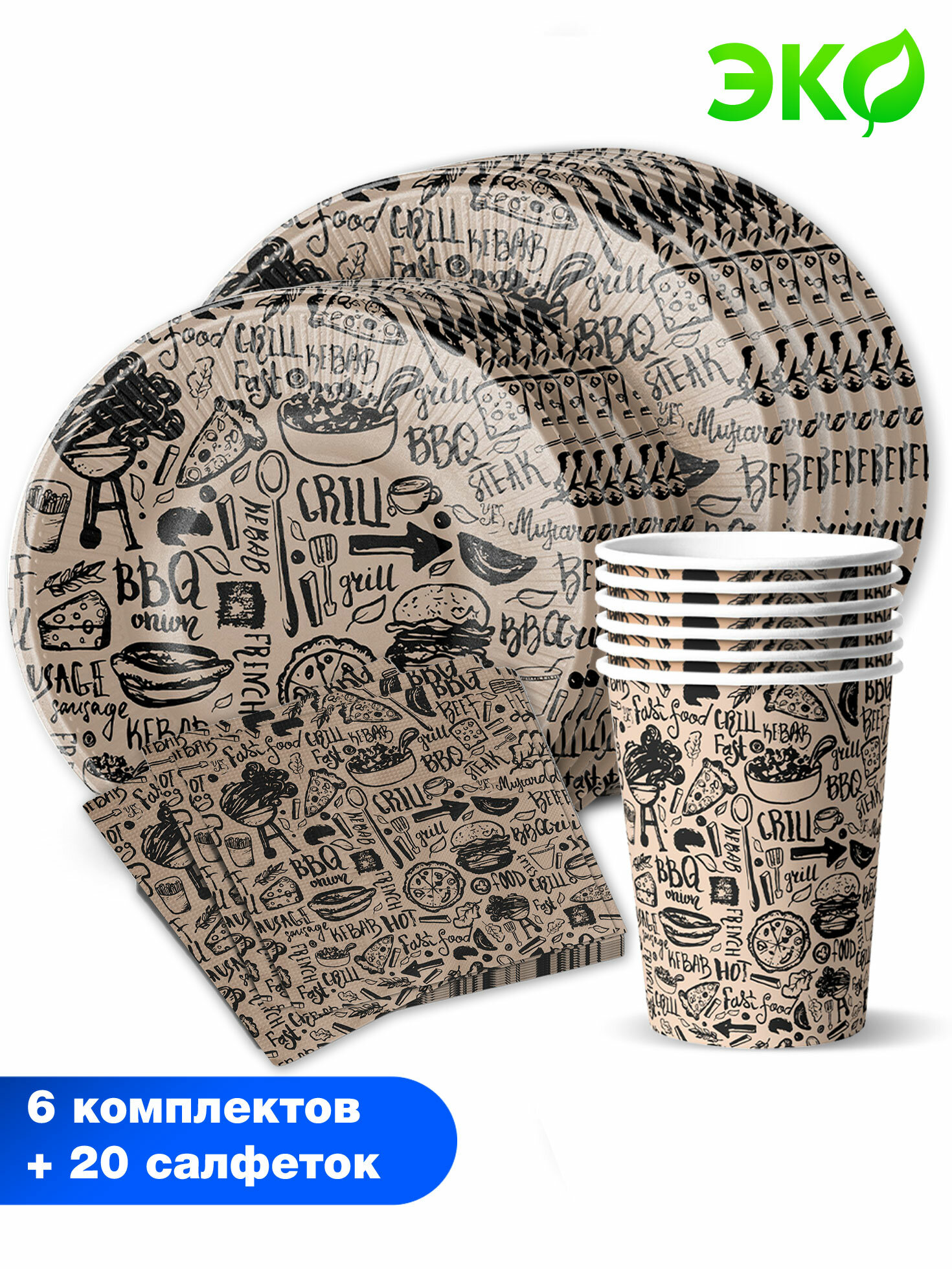 Набор бумажной одноразовой посуды для праздника Крафт (салфетки, стакан, тарелка мал, тарелка бол. по 6шт) ND Play информация: