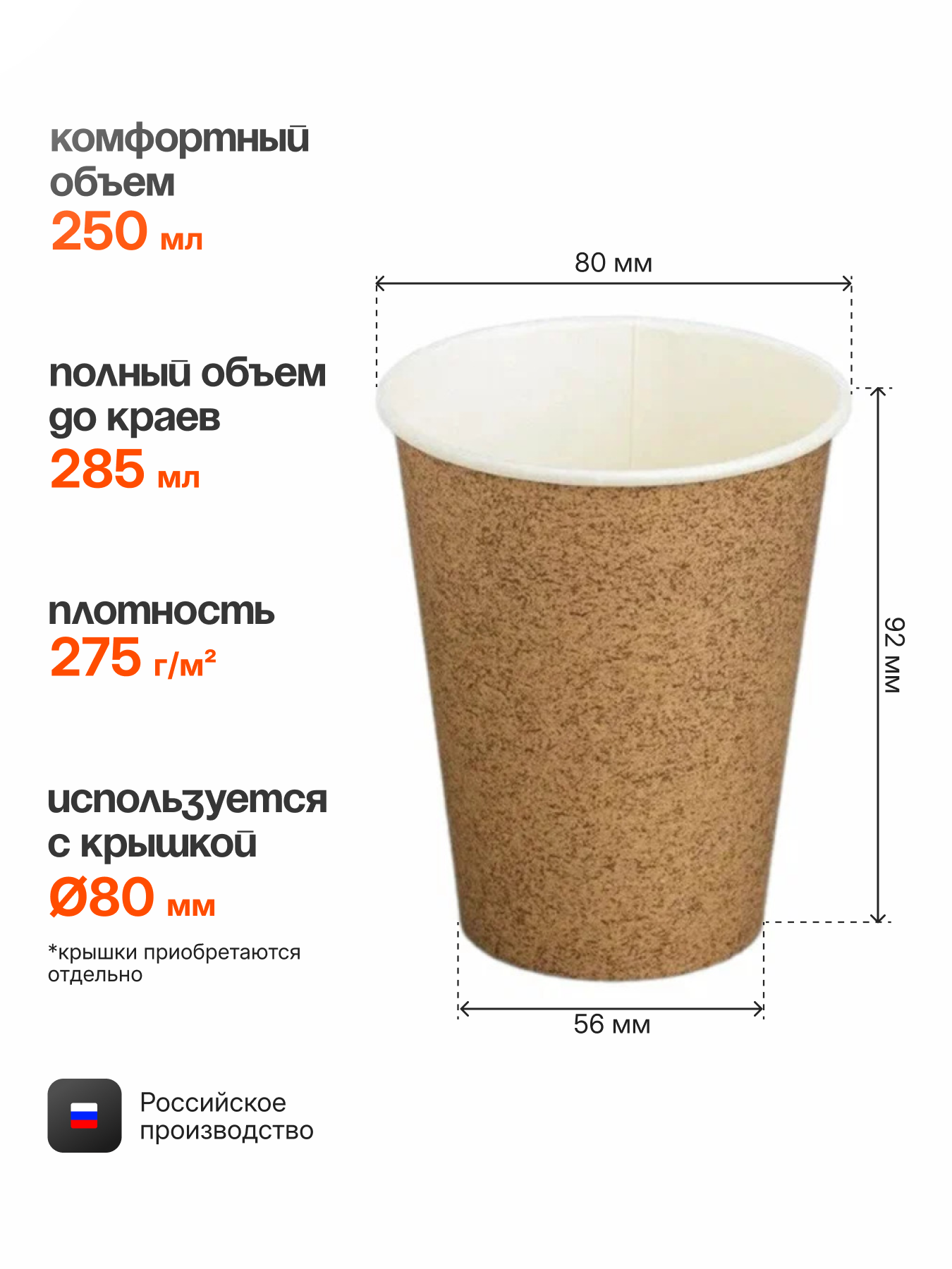Стакан Papcup "Под крафт", однослойный, бумажный, 250мл, 50шт информация: