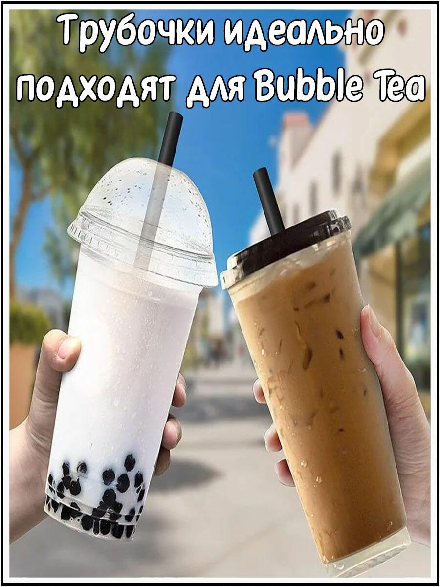 Трубочки широкие заостренные для Bubble Tea (бабл ти) коктейлей и смузи чёрные 50 шт. информация: