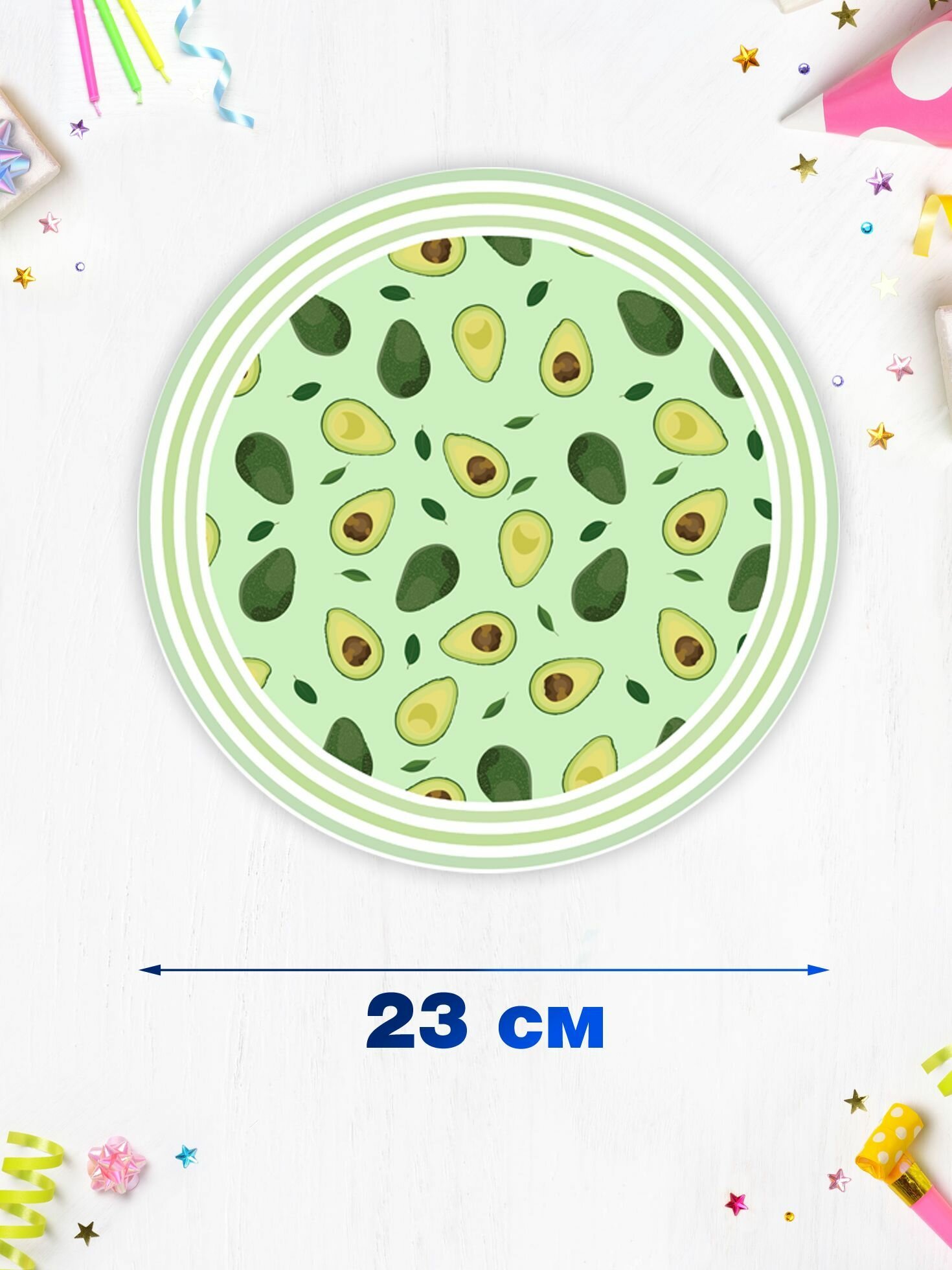 Одноразовая посуда для праздника и пикника ND Play / Набор бумажных тарелок Авокадо 2 на 18 персон (диаметр 23 см, 18 шт.), 303640 информация: