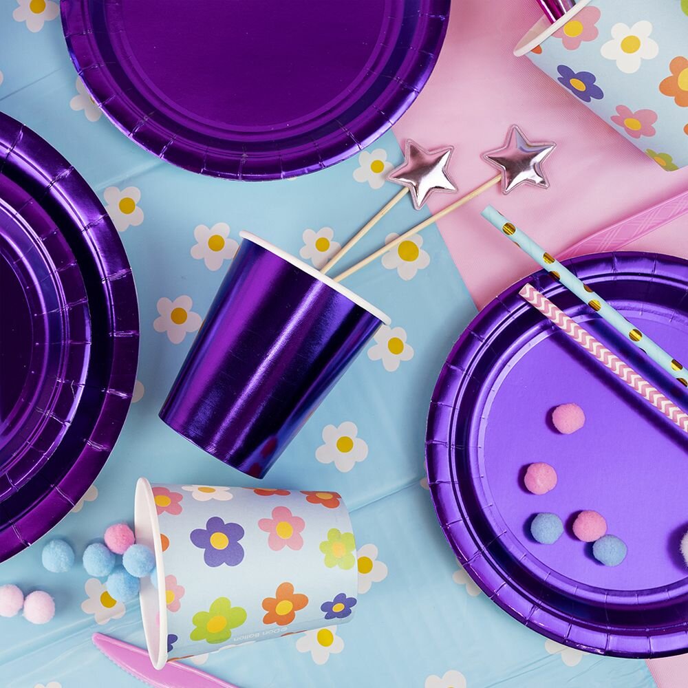 10 цен на Стаканы одноразовые бумажные Металлик, фиолетовые, 250 см, 6 шт.
