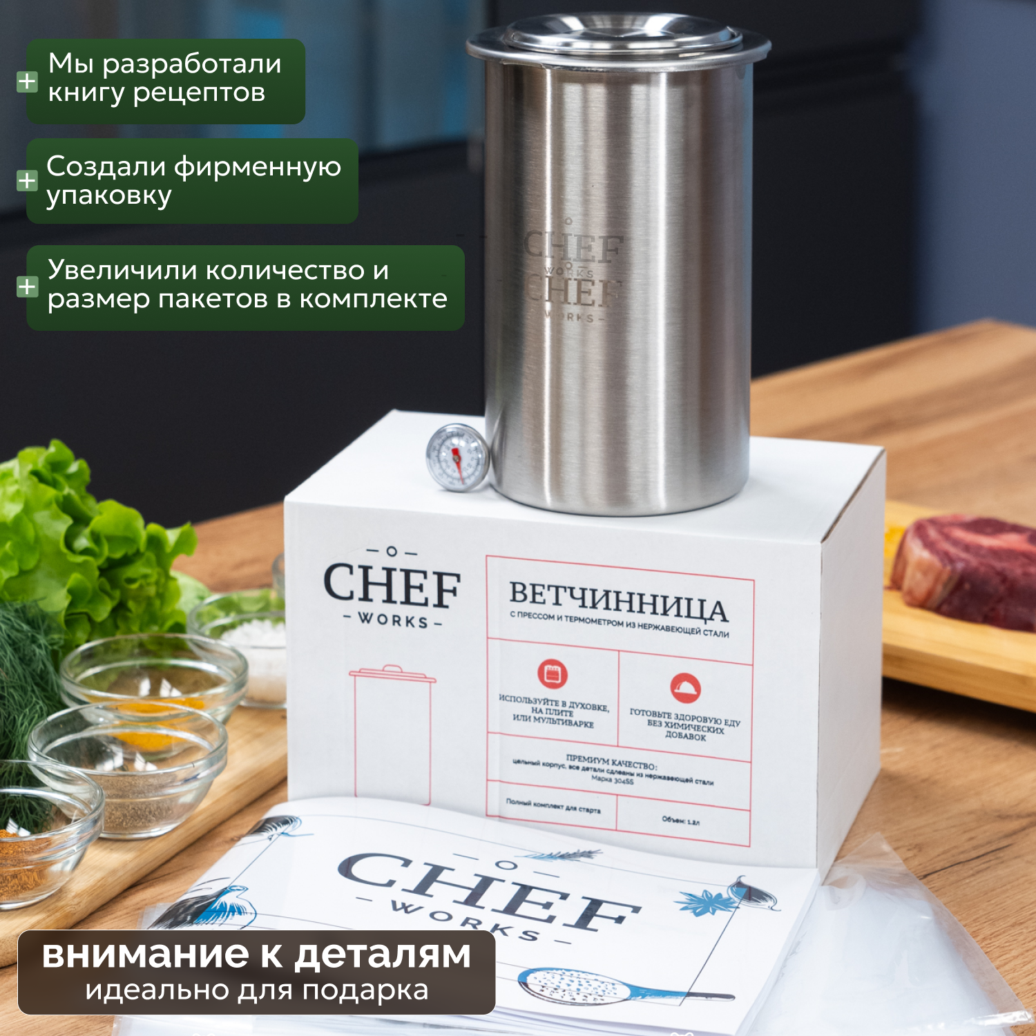 Ветчинница из нержавеющей стали с прессом и термометром информация: