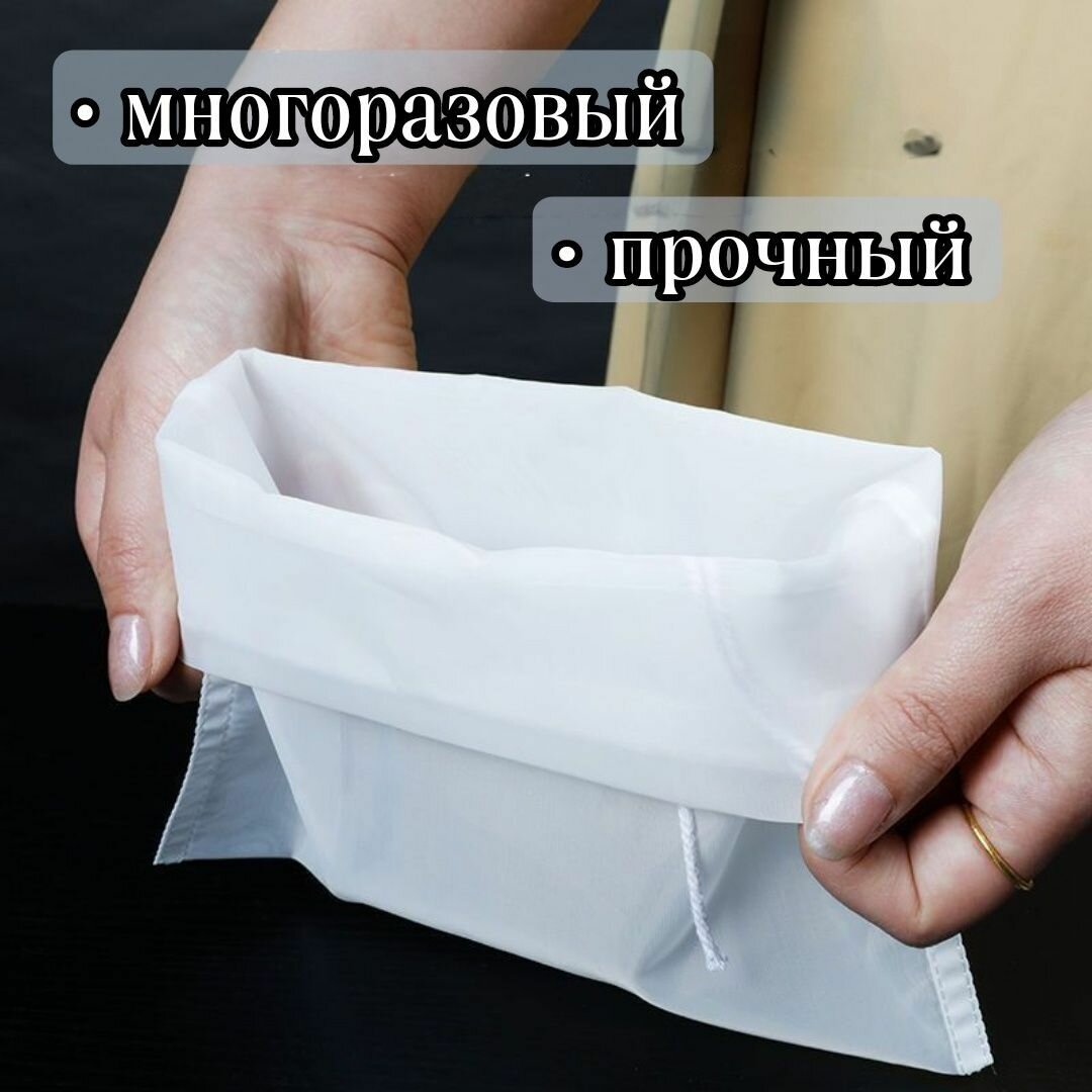 2 штуки Мешок-фильтр для отжима творога, сока, сыра, мешки для хранения орехов, круп, 200х150 мм, плотность 120 меш информация: