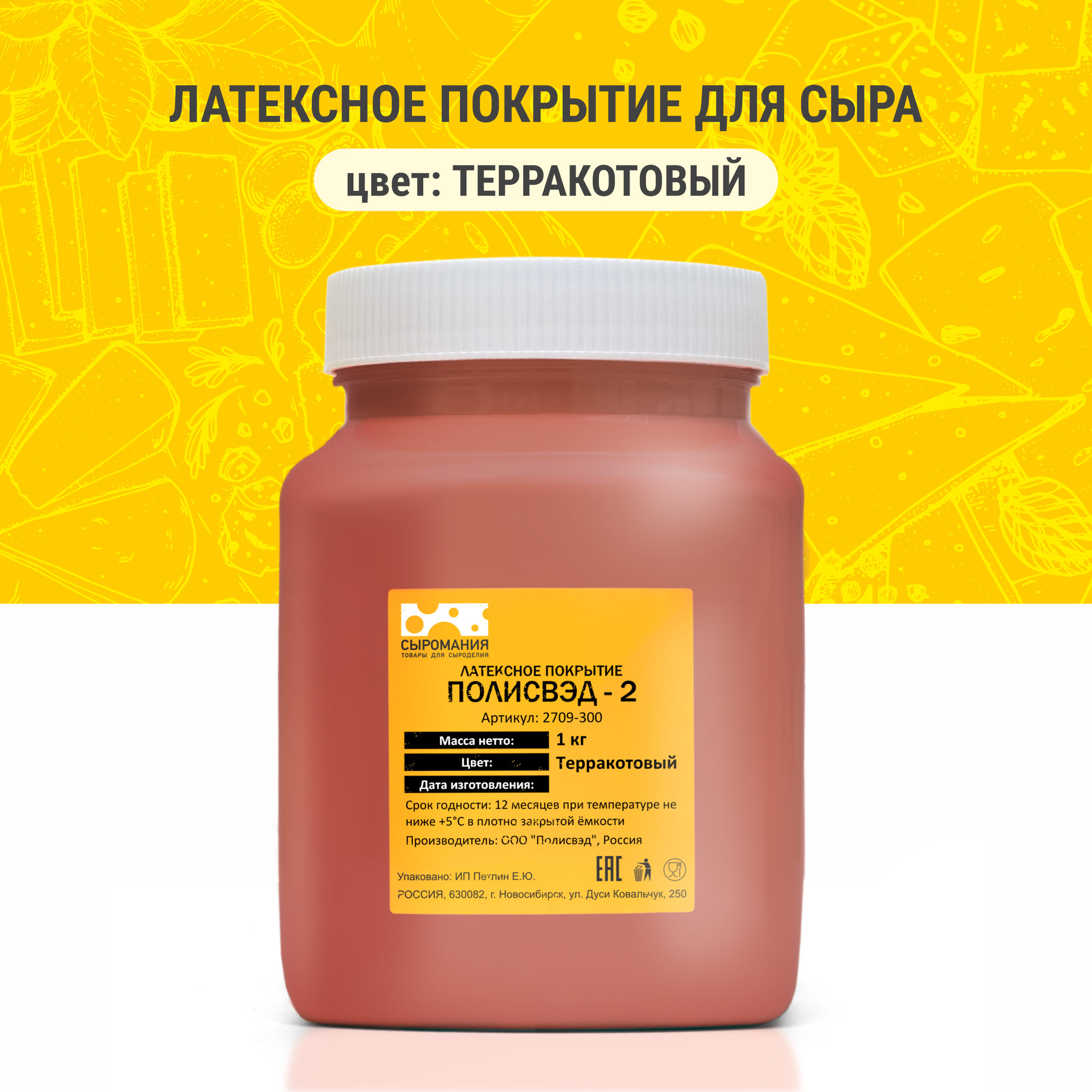 Латексное покрытие для созревания сыра "Полисвэд" 1 кг, терракотовый информация: