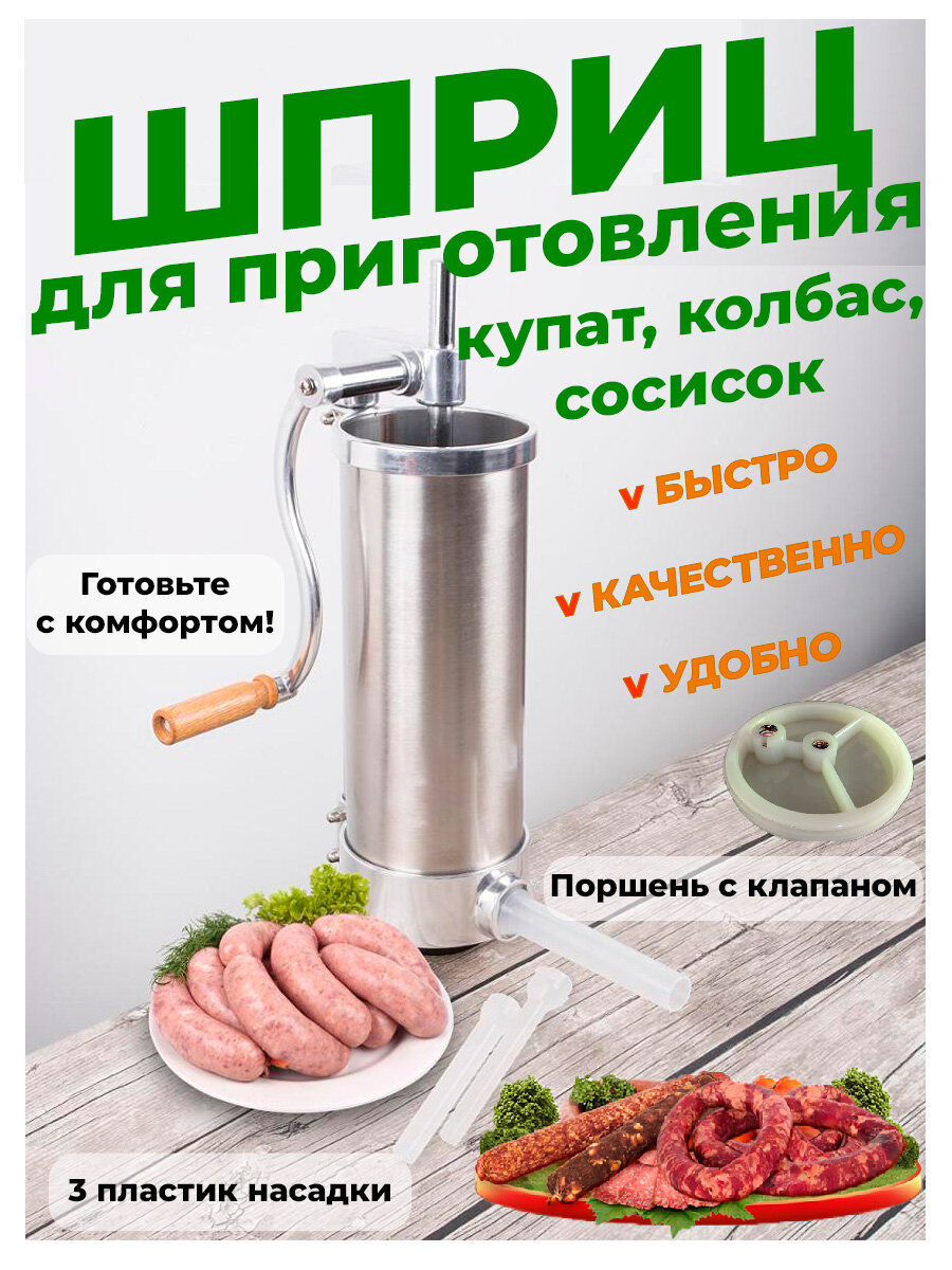 Отзывы на Шприц колбасный BIOWIN вертикальный на 3 литра с пластиковыми насадками