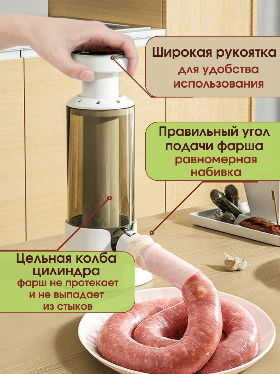 Отзывы на Шприц колбасный для приготовления колбас, сосисок и купат с 4 насадками